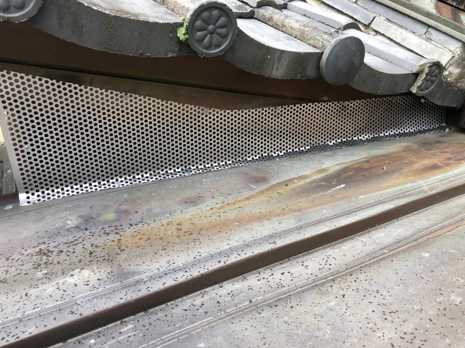 続いて、パンチングメタルや金網、コーキング剤などを用いて、あらゆる侵入経路を封鎖していきます。これによりイタチに限らず、他の害獣の再侵入も防ぐことができます。