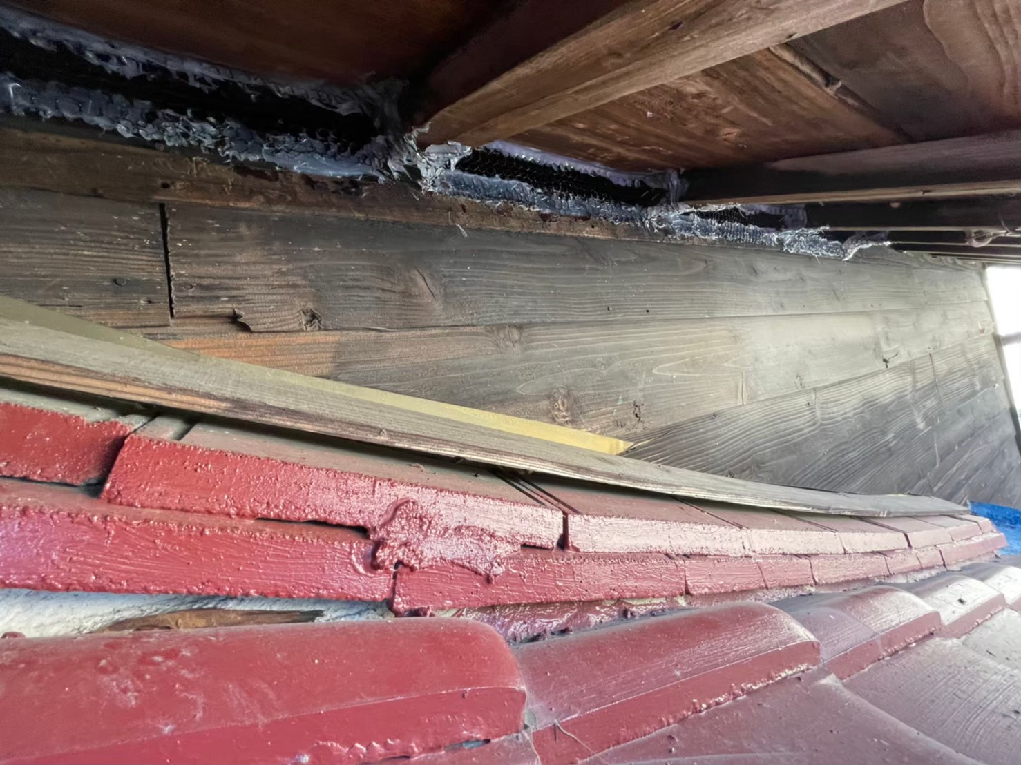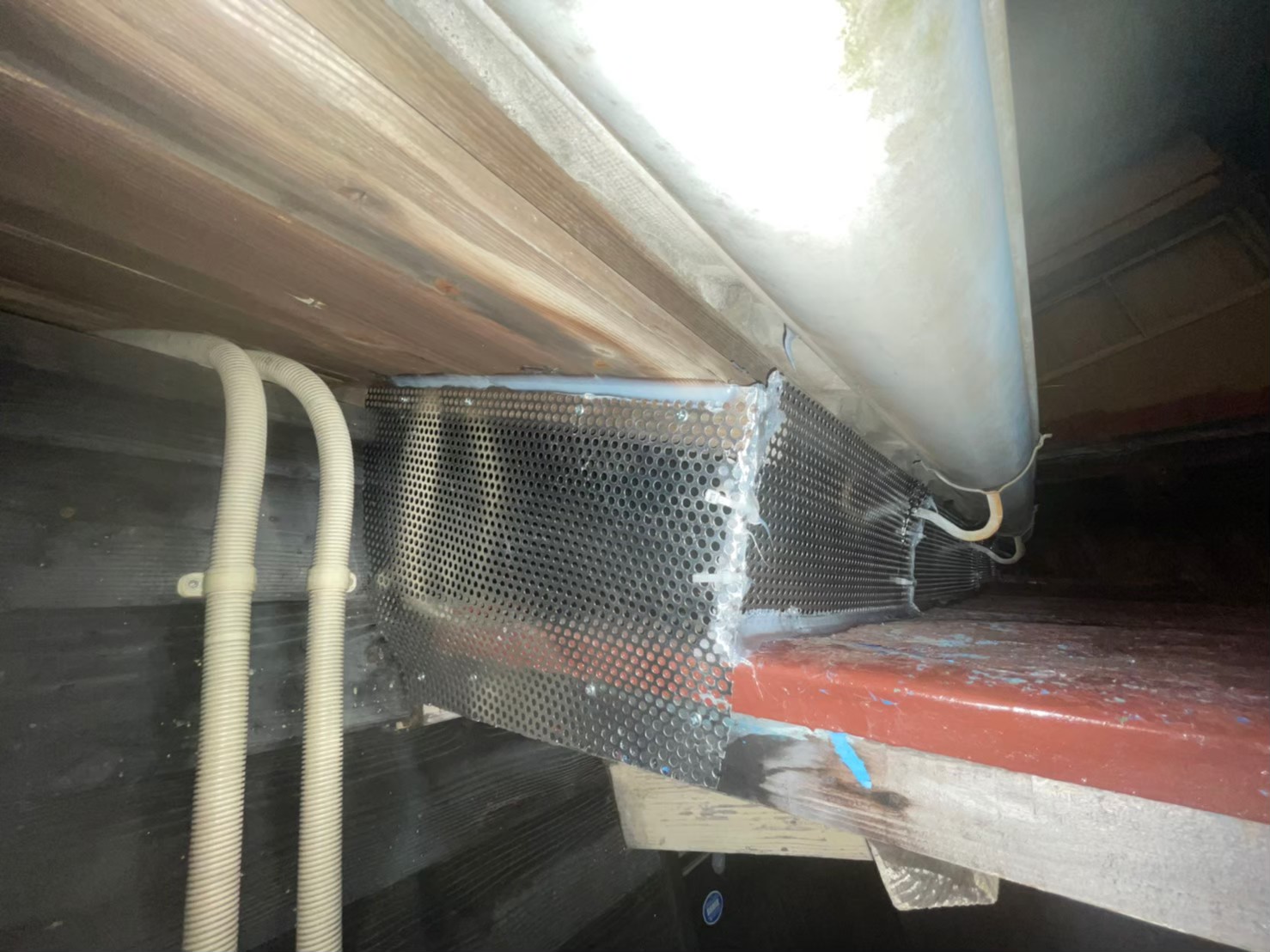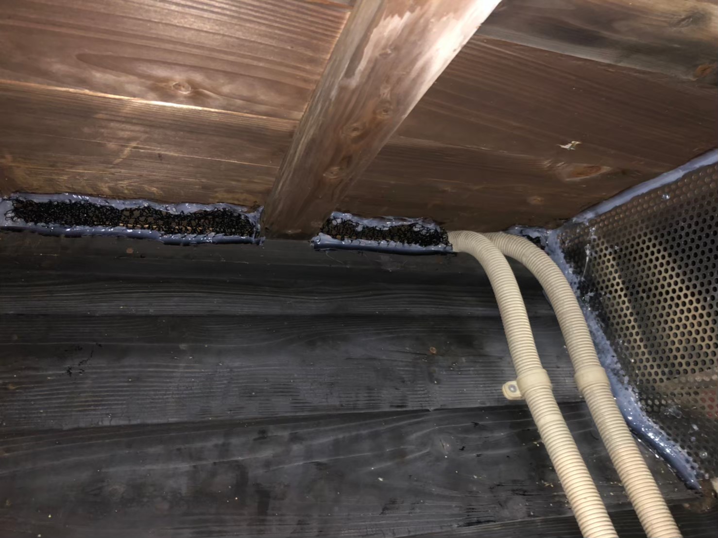 続いて、パンチングメタルや金網、コーキング剤などを用いて、あらゆる侵入経路を封鎖していきます。これによりイタチに限らず、他の害獣の再侵入も防ぐことができます。