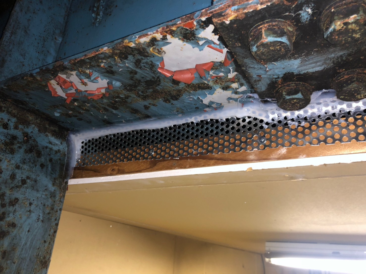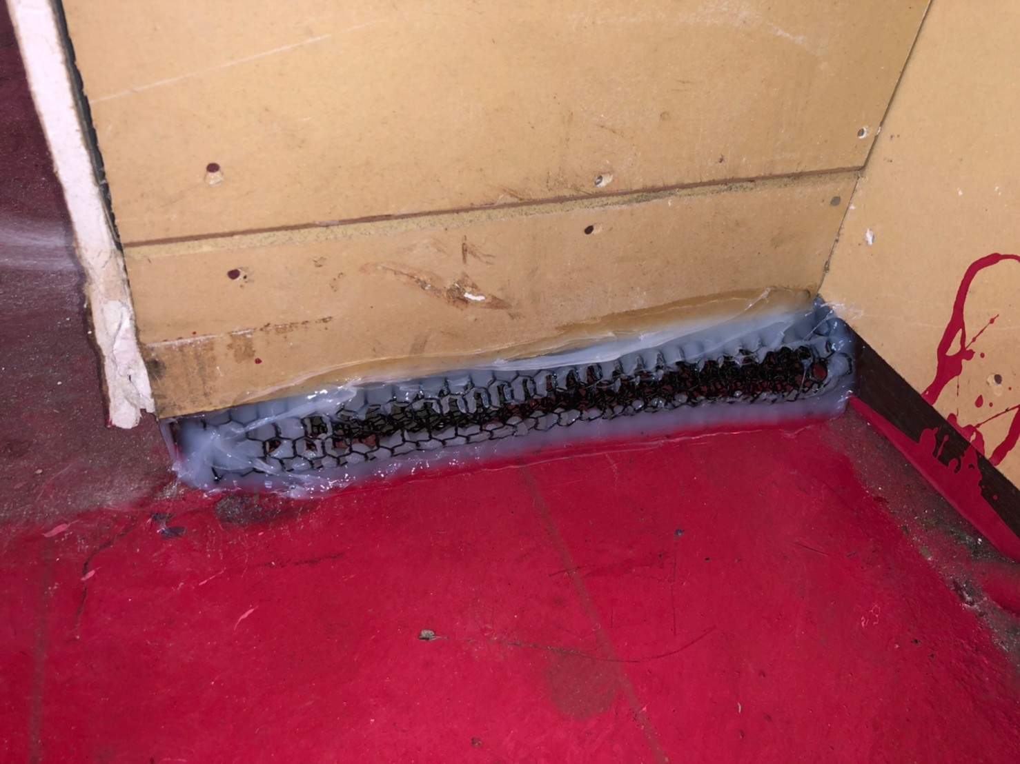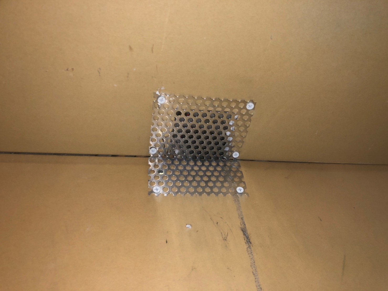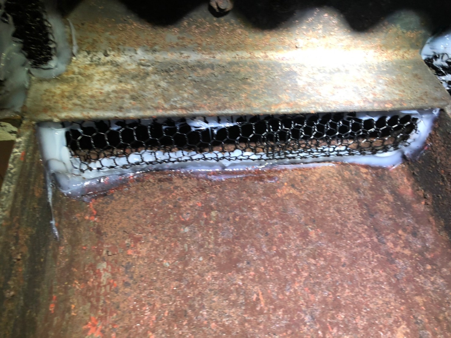 続いて、イタチの再侵入を防ぐために、パンチングメタルや金網、コーキング剤などを用いて侵入経路の封鎖を行います。