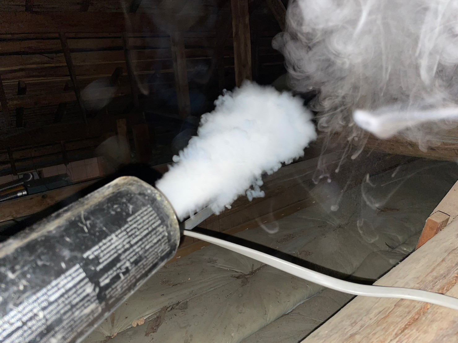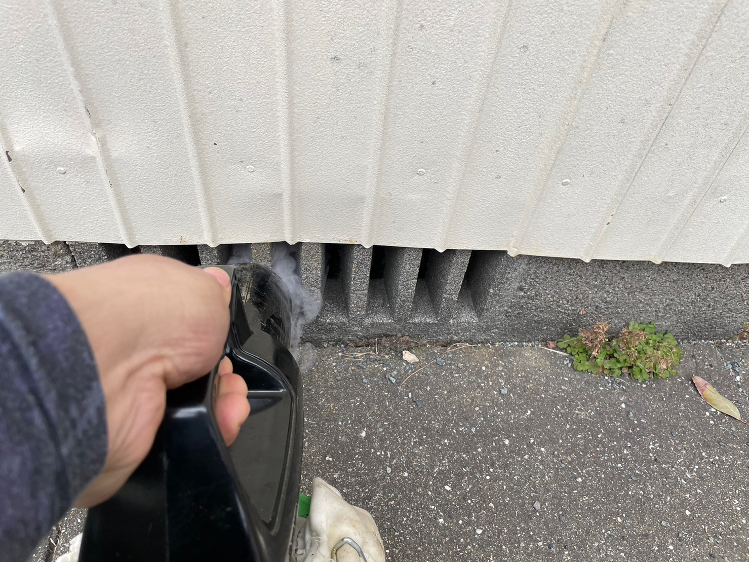 まずは、燻煙剤を使って屋内に潜んでいるネズミ、イタチを追い出します。