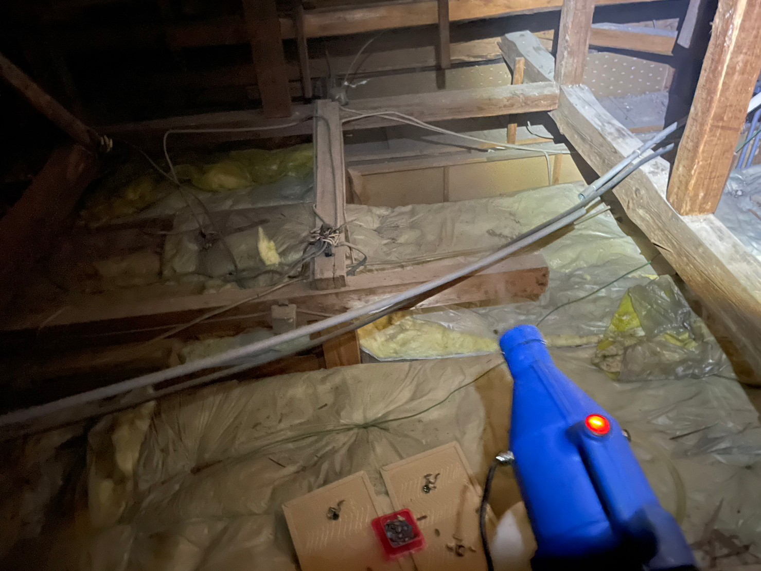 最後に、糞清掃や殺菌・消毒、マーキング消臭、ノミ・ダニ駆除、毒エサ・トラップ設置といった残りの作業を行い、駆除~再発防止までの工程が全て終了します。