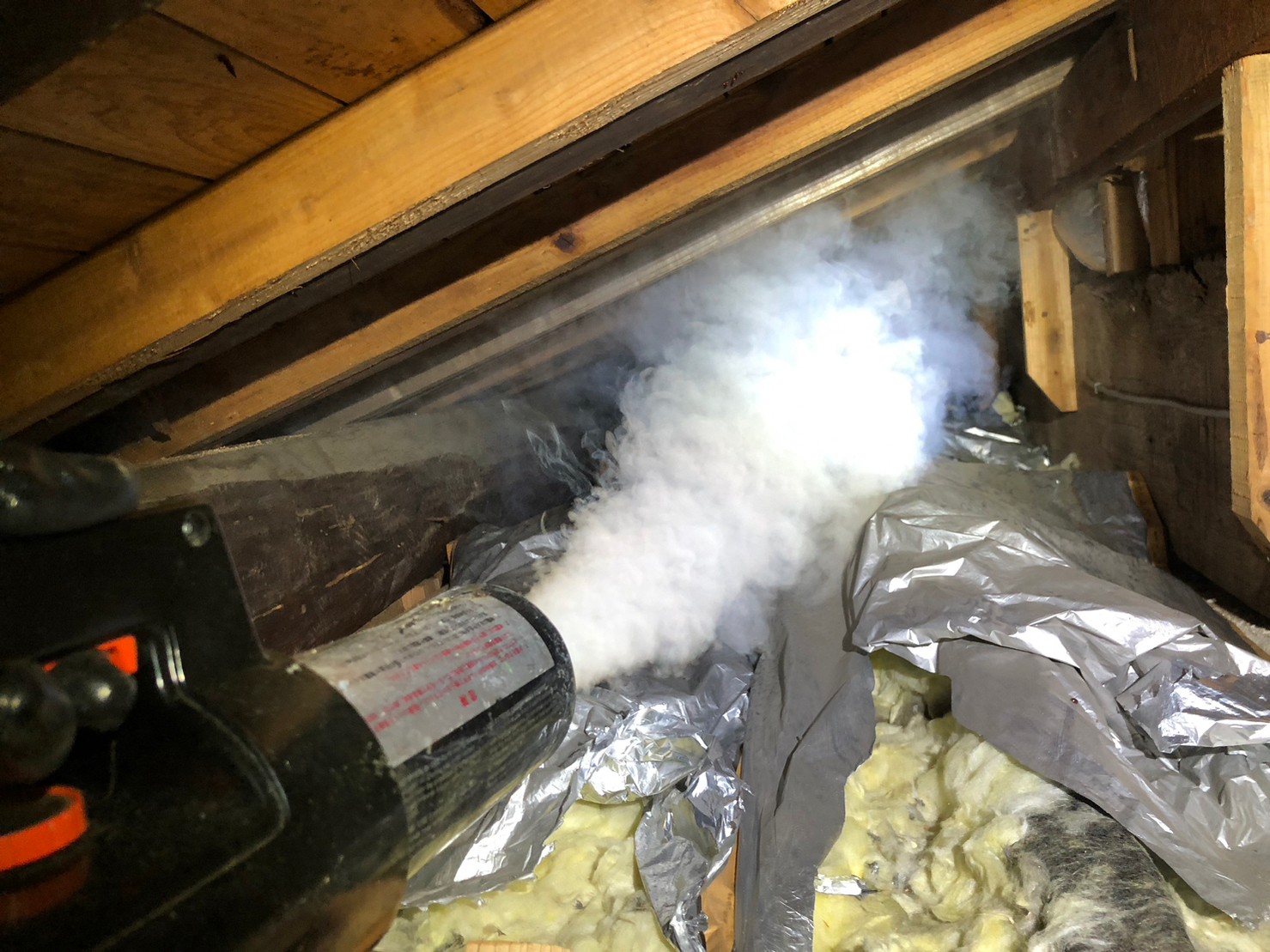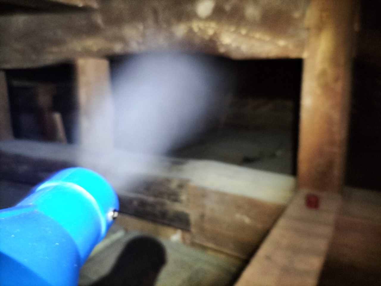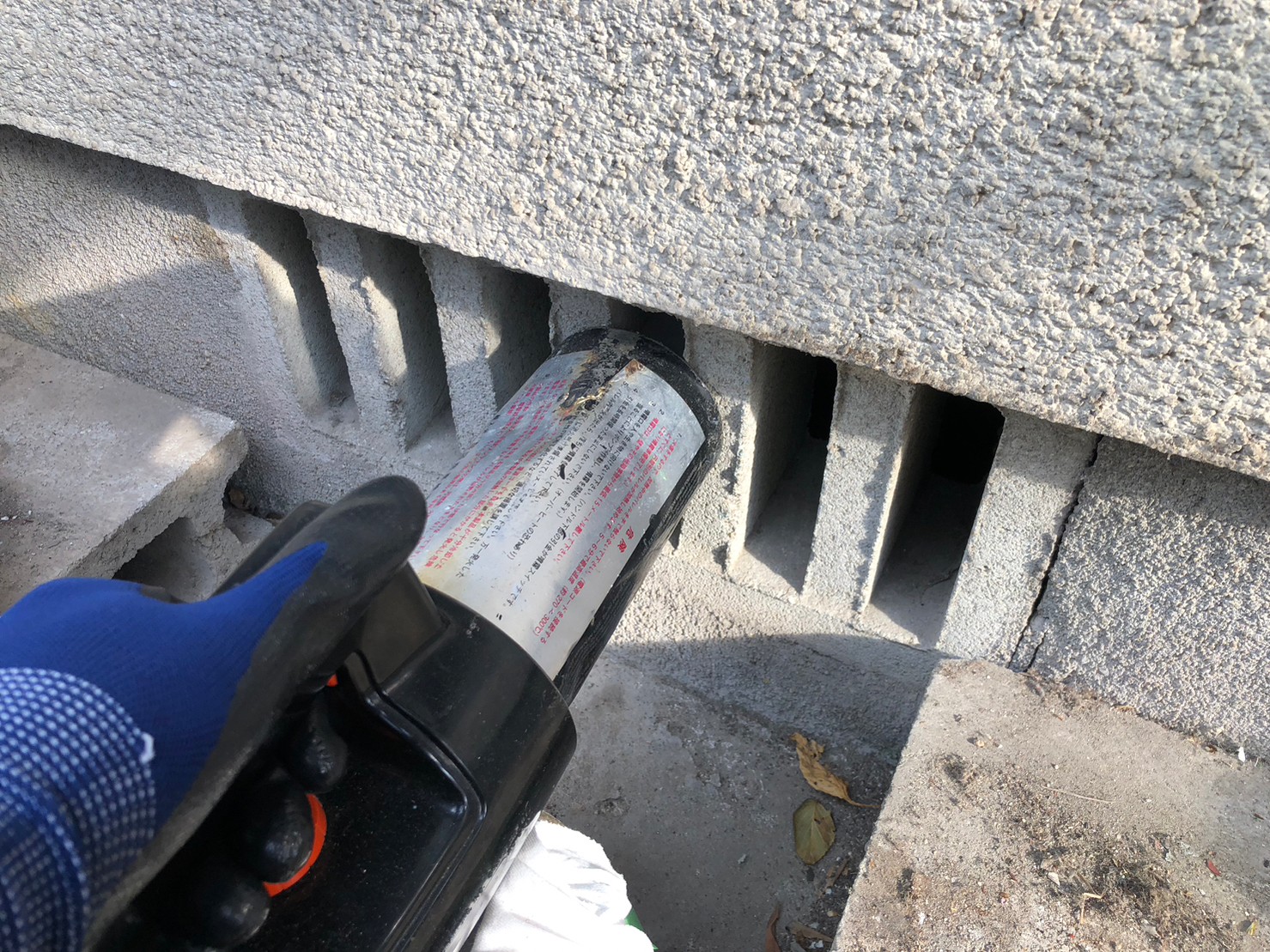まずは、燻煙剤と呼ばれる薬剤を天井裏や床下に投入することで、イタチを追い出していきます。