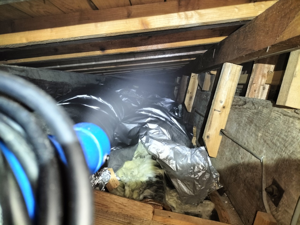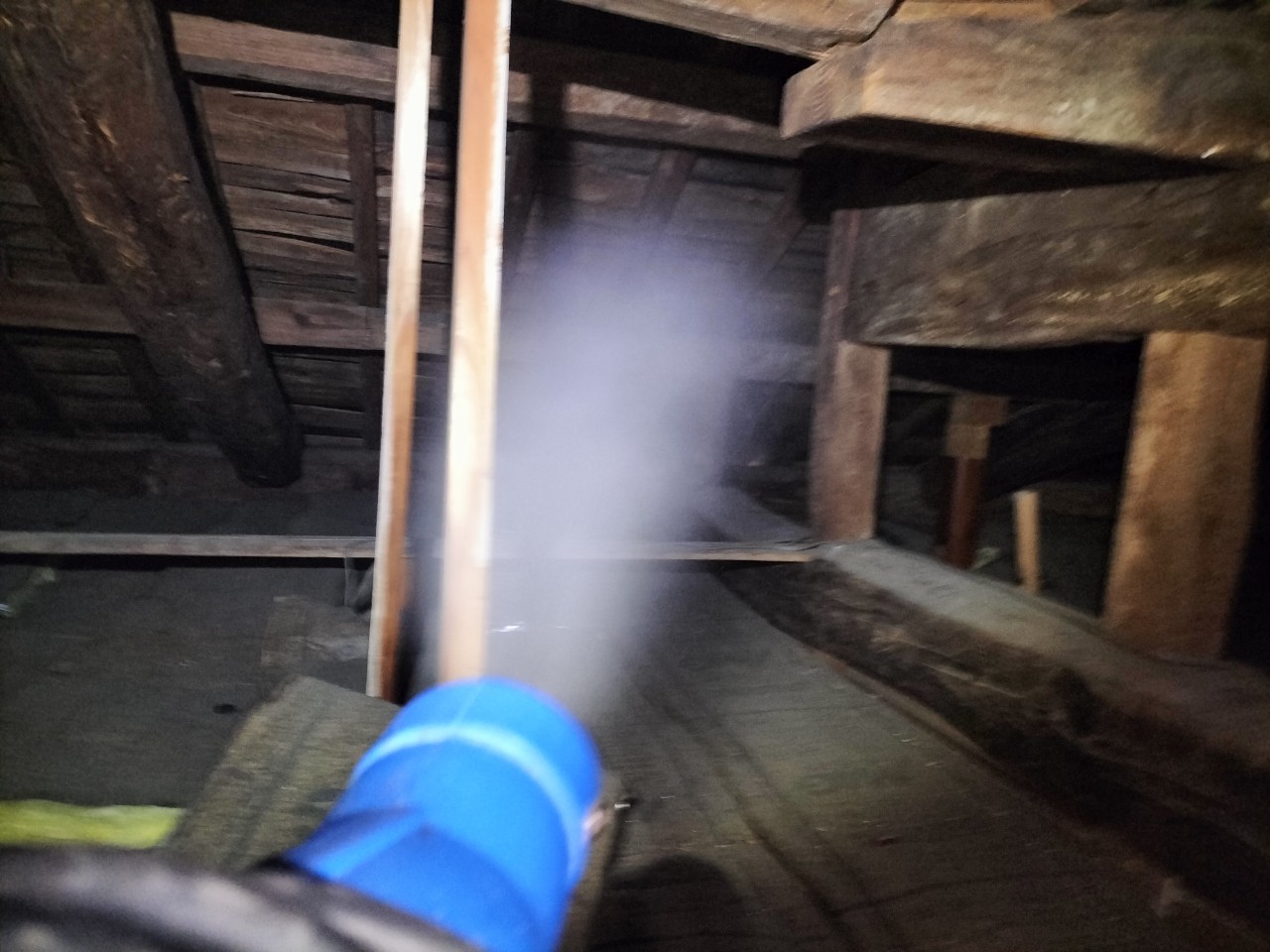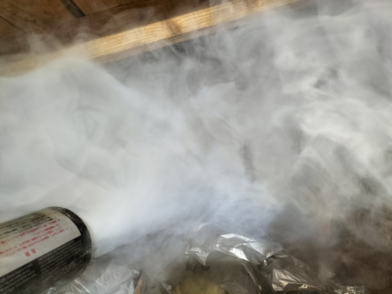 まずは、燻煙剤と呼ばれる薬剤を天井裏や床下に投入することで、イタチを追い出していきます。
