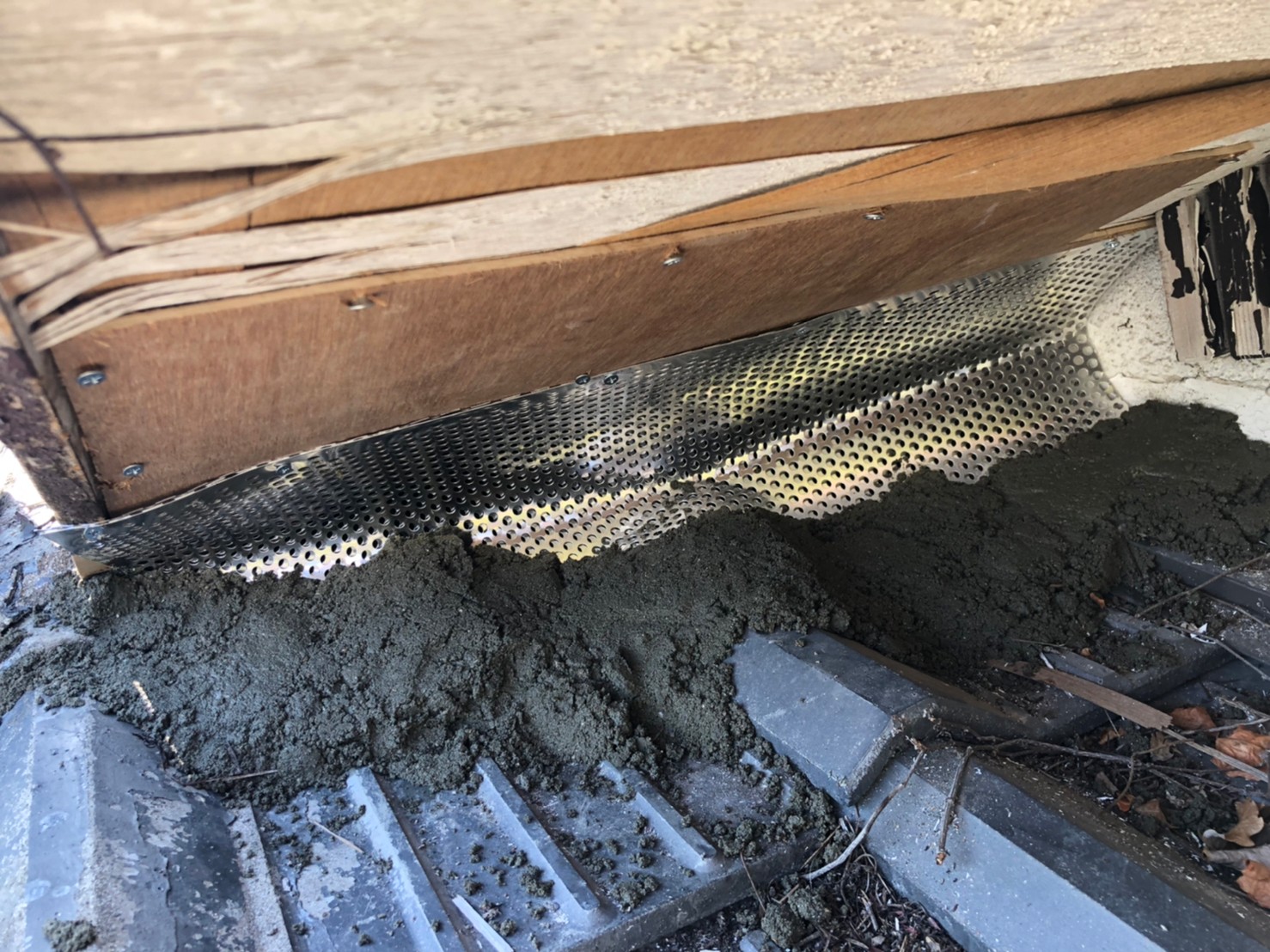 続いて、パンチングメタルや金網、コーキング剤などを用いて、あらゆる侵入経路を封鎖していきます。これによりアライグマに限らず、他の害獣の再侵入も防ぐことができます。