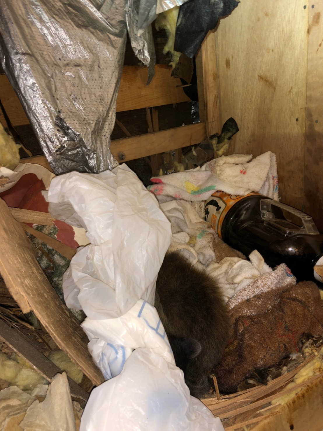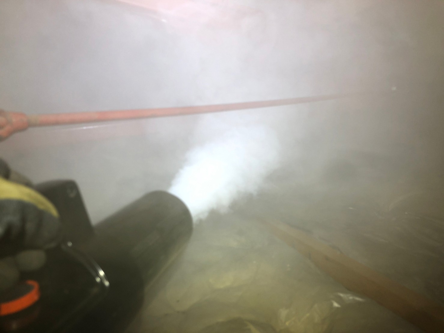 まずは、燻煙剤と呼ばれる薬剤を天井裏や床下に投入することで、アライグマを追い出していきます。
