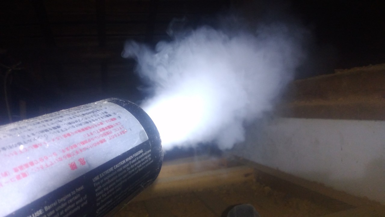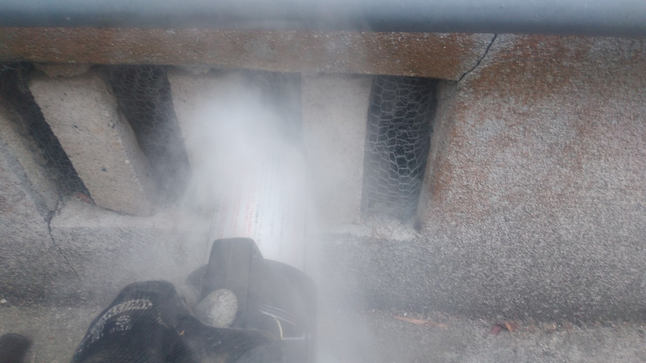 まずは、燻煙剤と呼ばれる薬剤を天井裏や床下に投入することで、アライグマを追い出していきます。