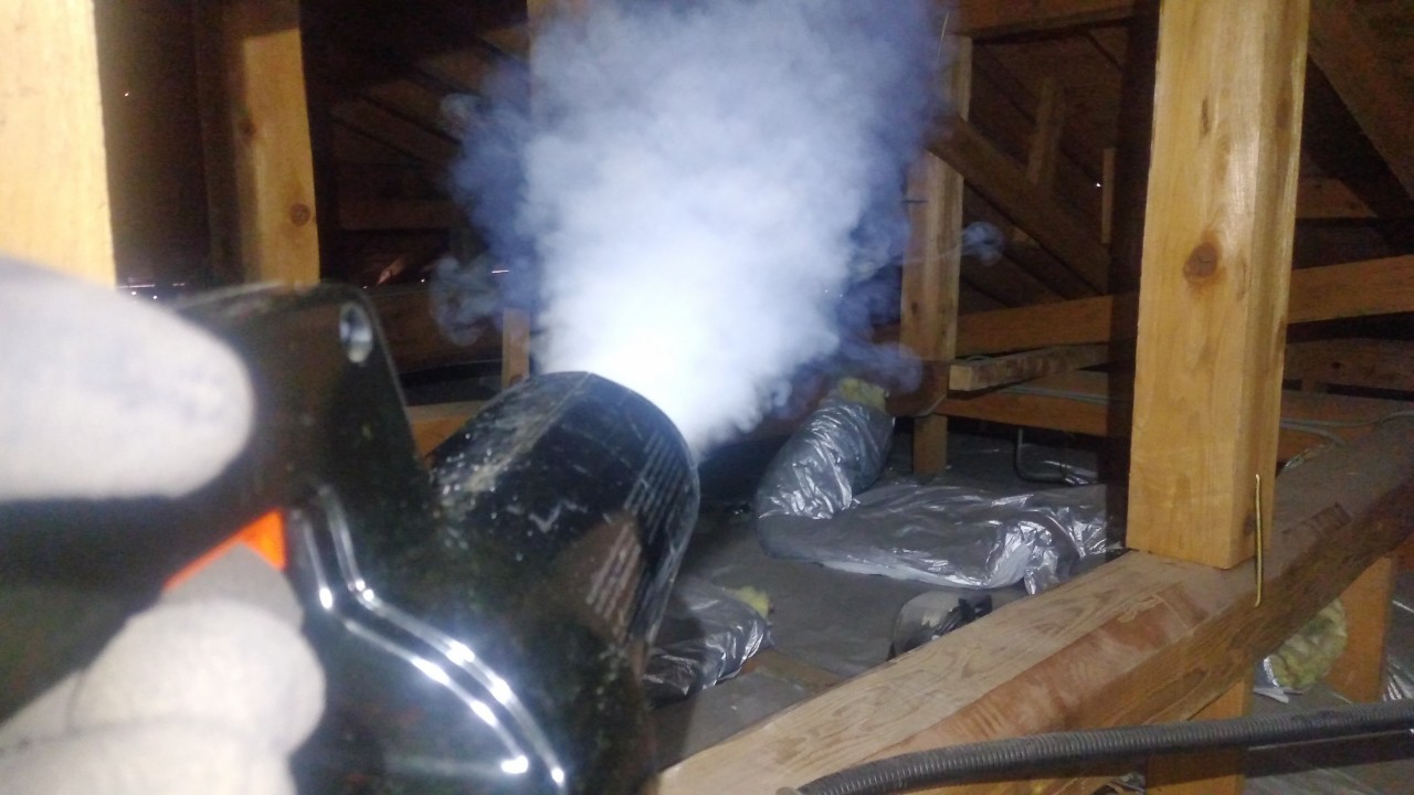 まずは、燻煙剤と呼ばれる薬剤を天井裏や床下に投入することで、イタチを追い出していきます。