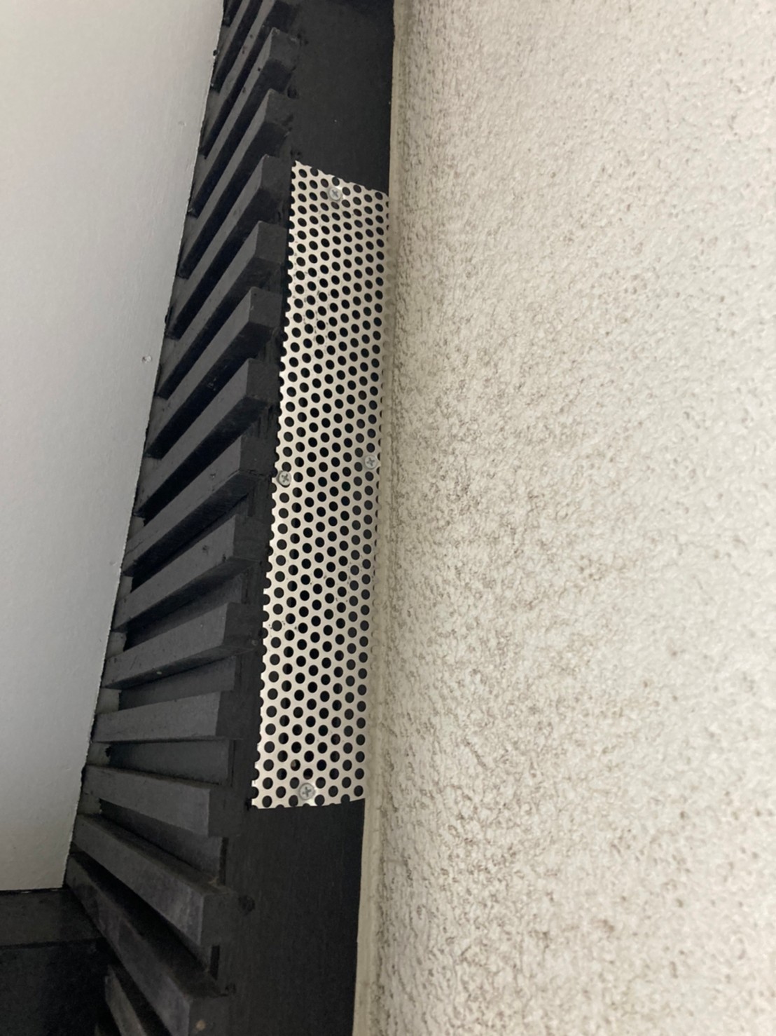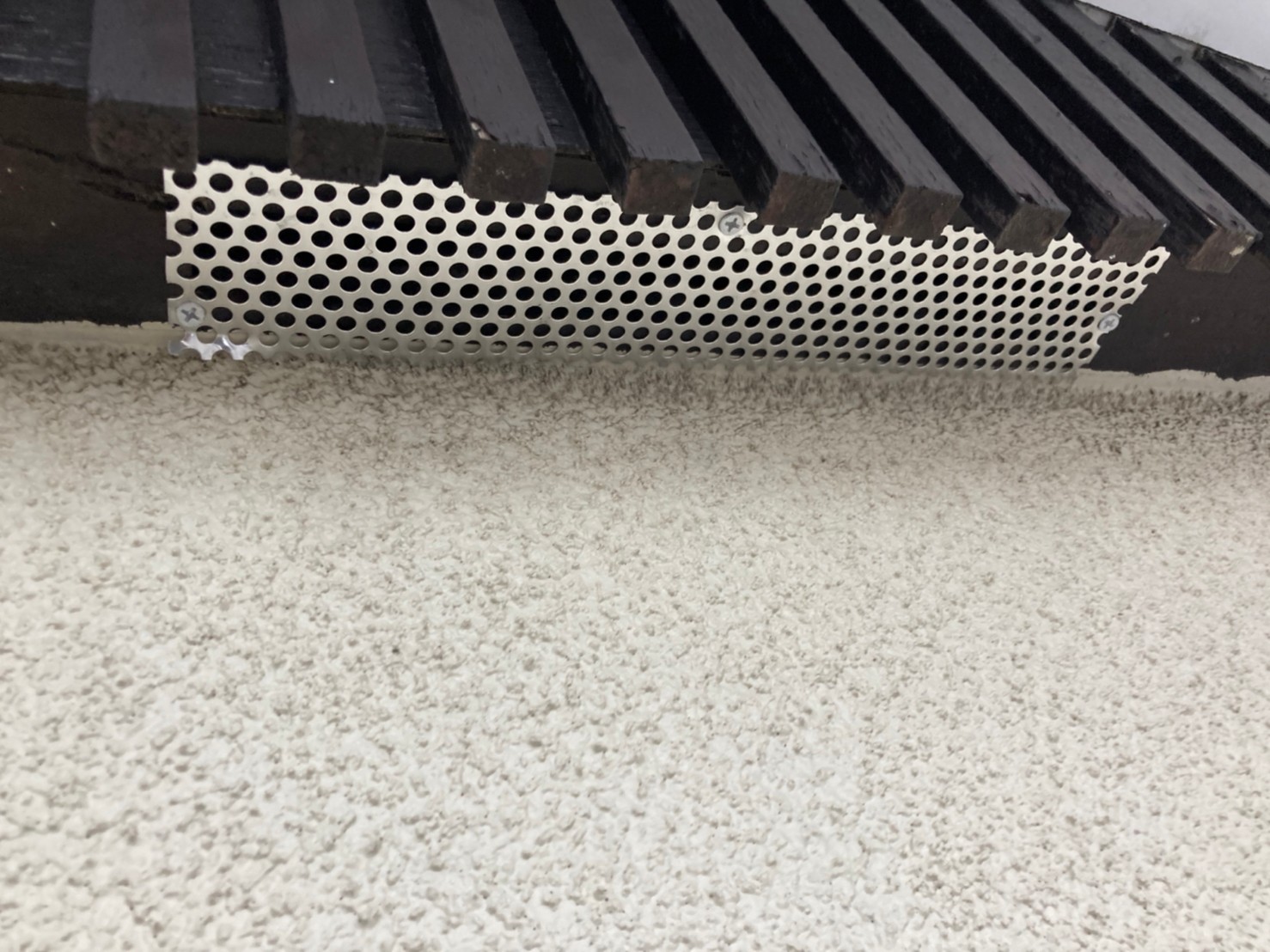 続いて、アライグマの再侵入を防ぐために、パンチングメタルや金網、コーキング剤などを用いて侵入経路の封鎖を行います。