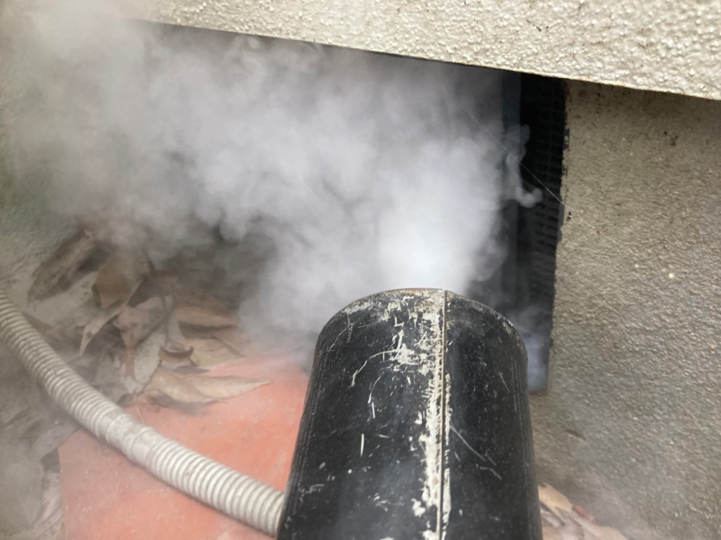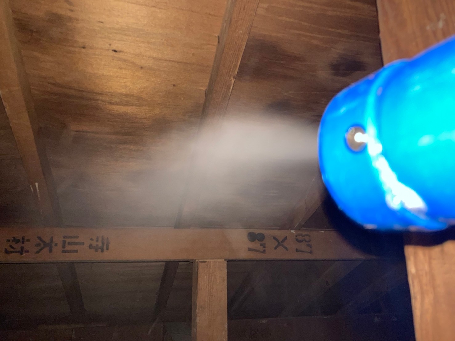 まずは、燻煙剤を使って屋内に潜んでいるアライグマを追い出します。
