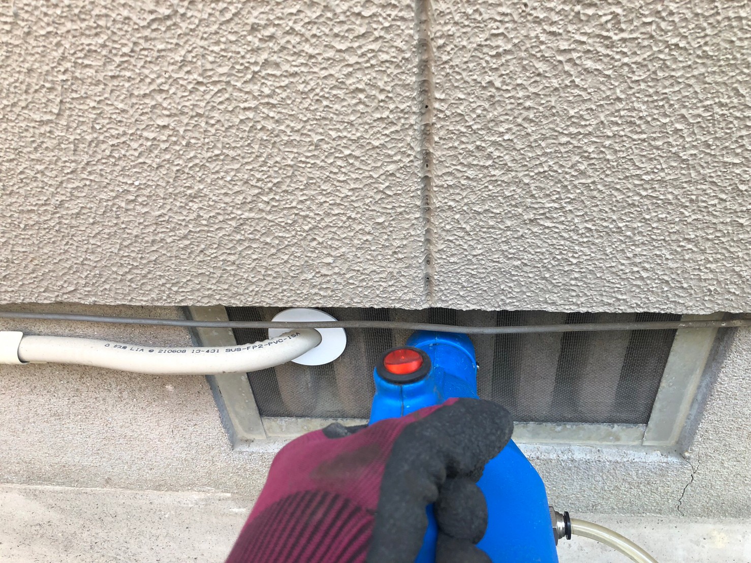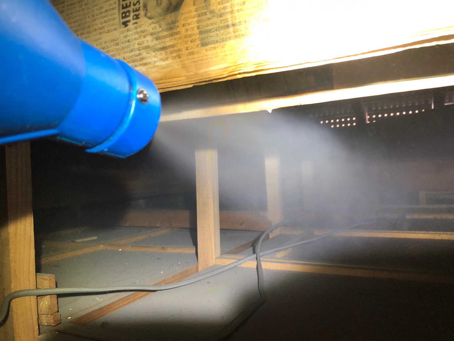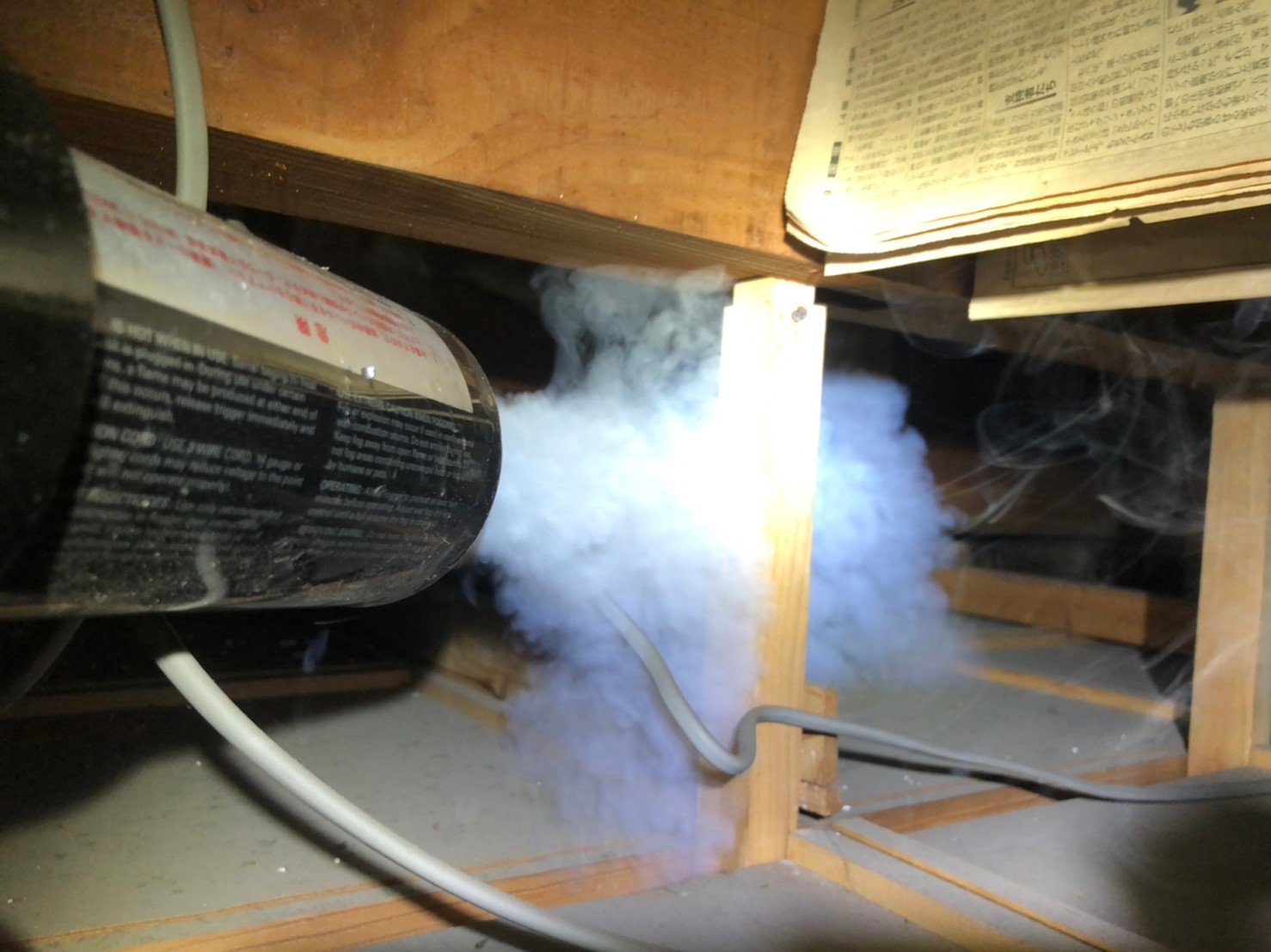まずは、燻煙剤と呼ばれる薬剤を天井裏や床下に投入することで、イタチ、アライグマを追い出していきます。