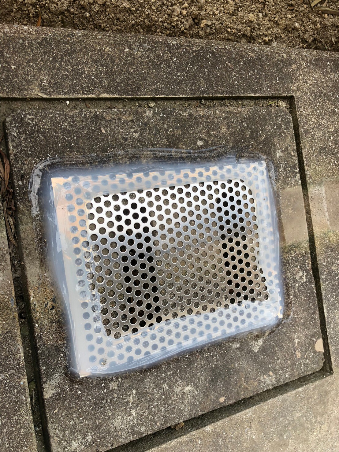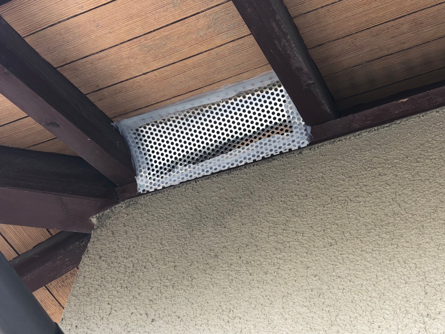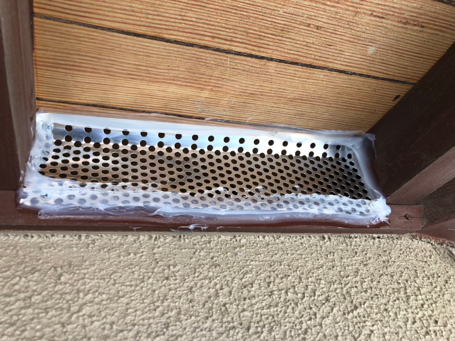 続いて、パンチングメタルや金網、コーキング剤などを用いて、あらゆる侵入経路を封鎖していきます。これによりイタチ、アライグマに限らず、他の害獣の再侵入も防ぐことができます。