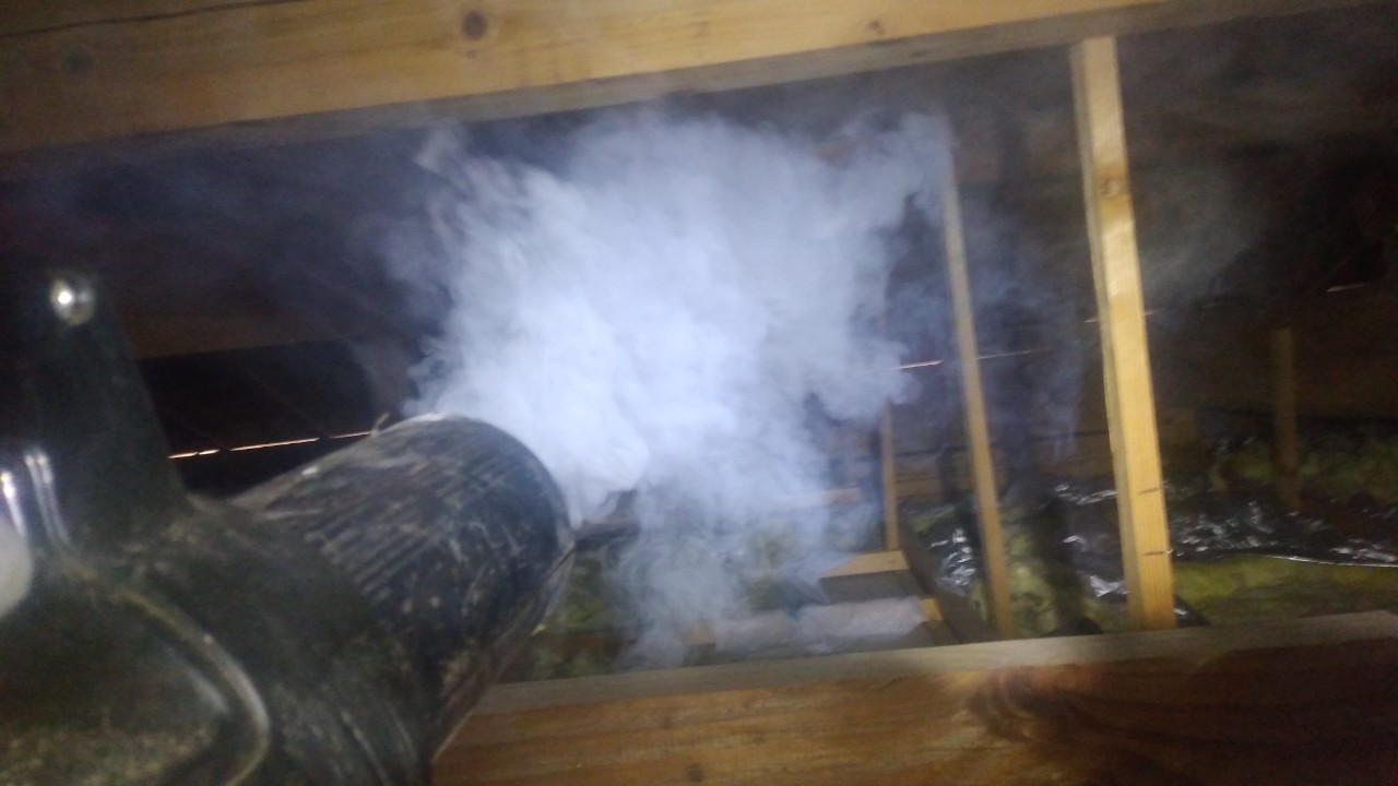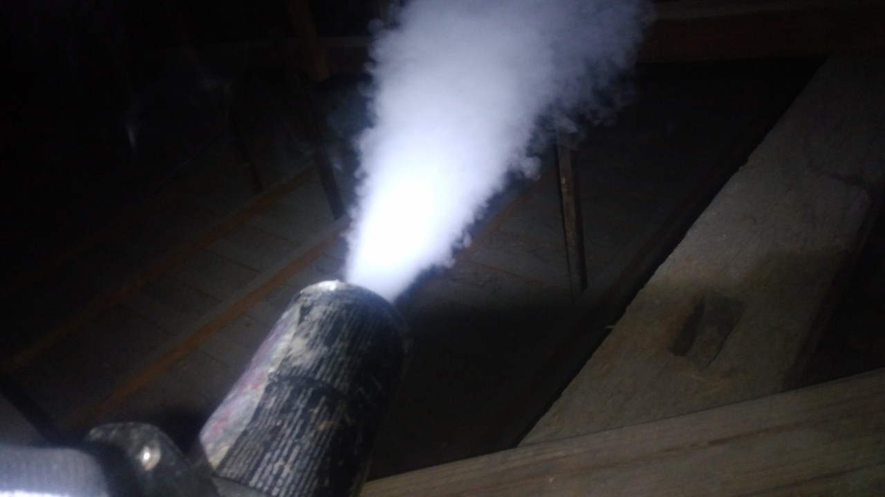 まずは、燻煙剤と呼ばれる薬剤を天井裏や床下に投入することで、アライグマを追い出していきます。