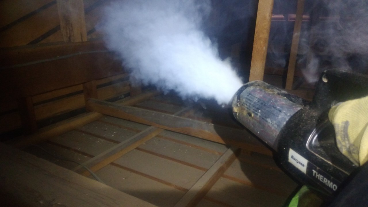 まずは、燻煙剤と呼ばれる薬剤を天井裏や床下に投入することで、アライグマを追い出していきます。