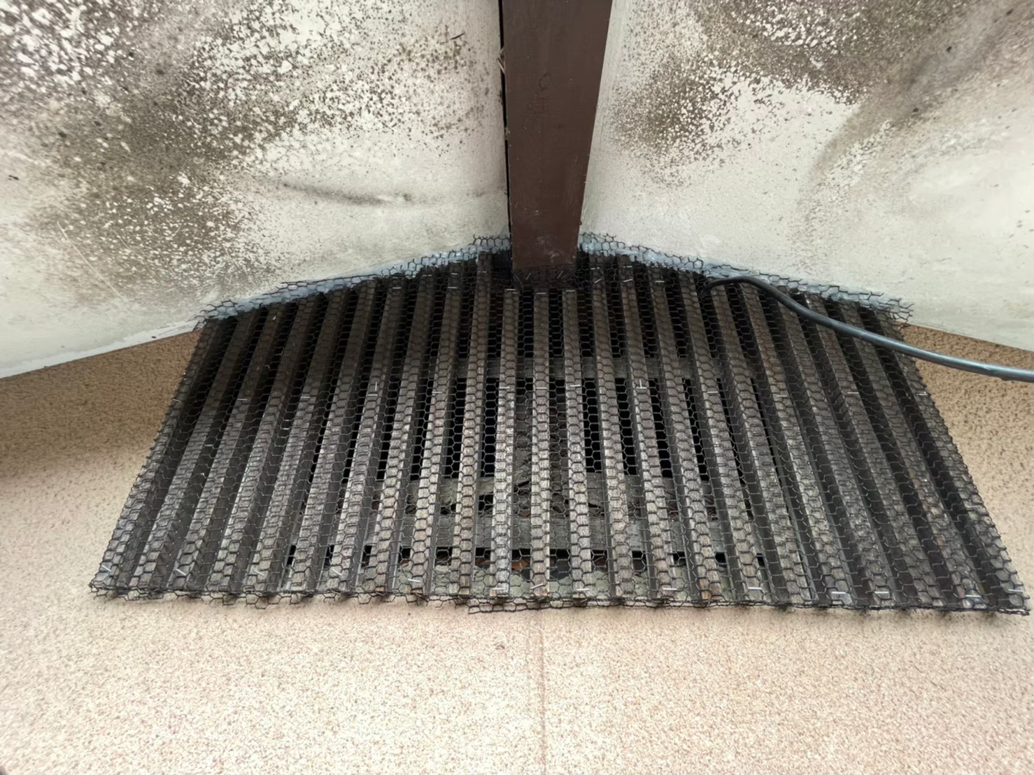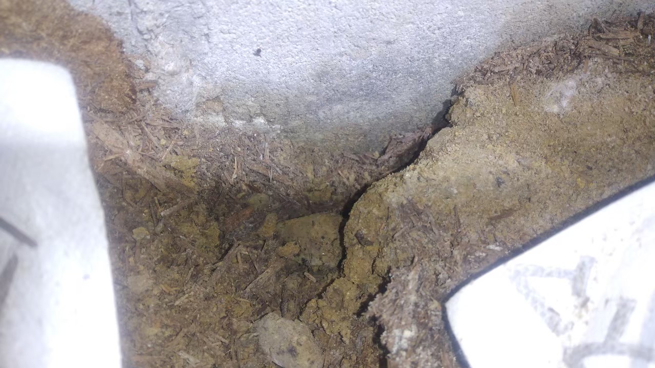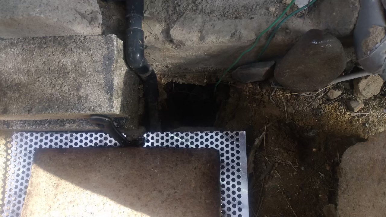 基礎の割れ目や排水部、屋根の隙間等がネズミの侵入経路と疑われました。