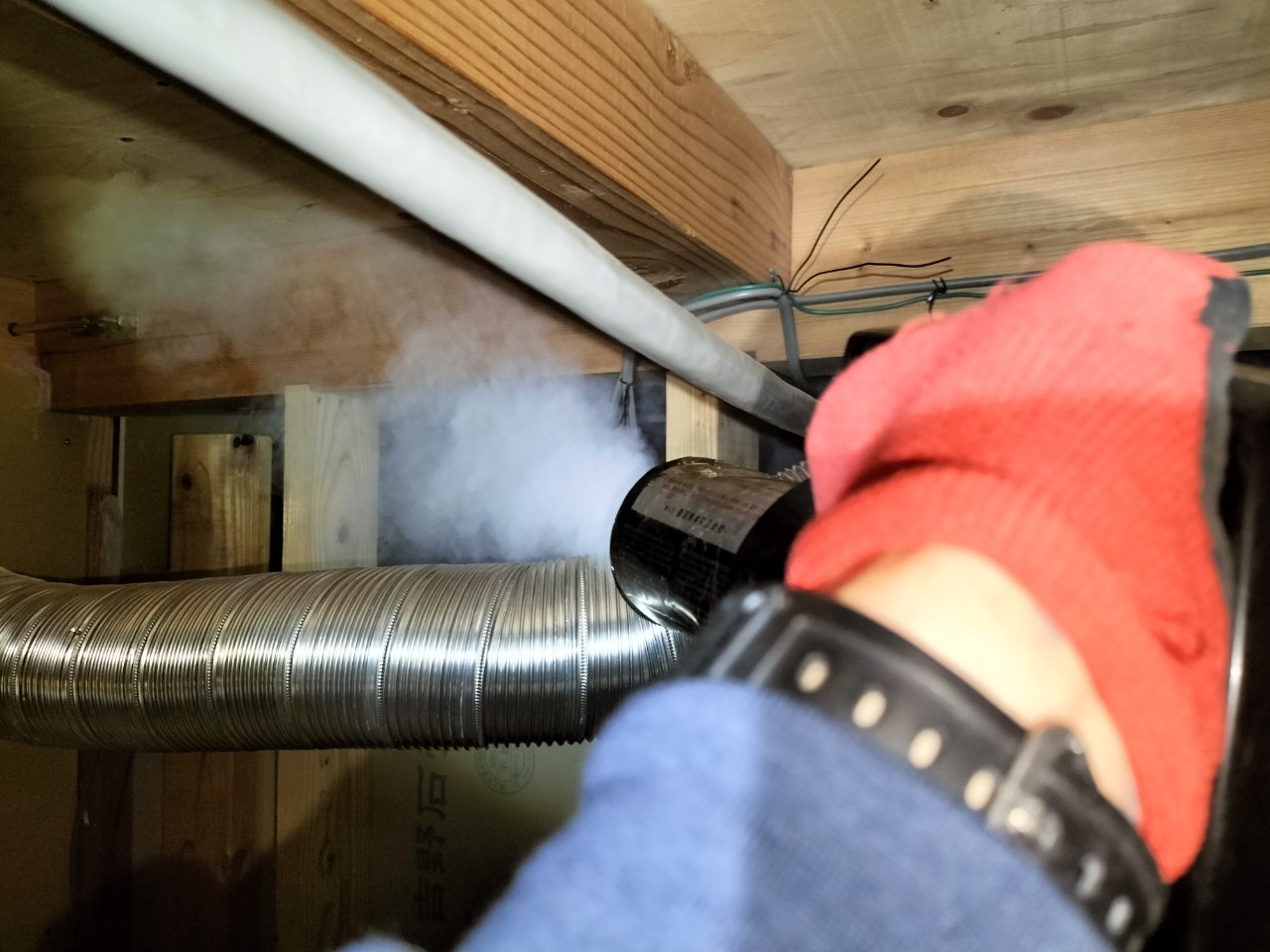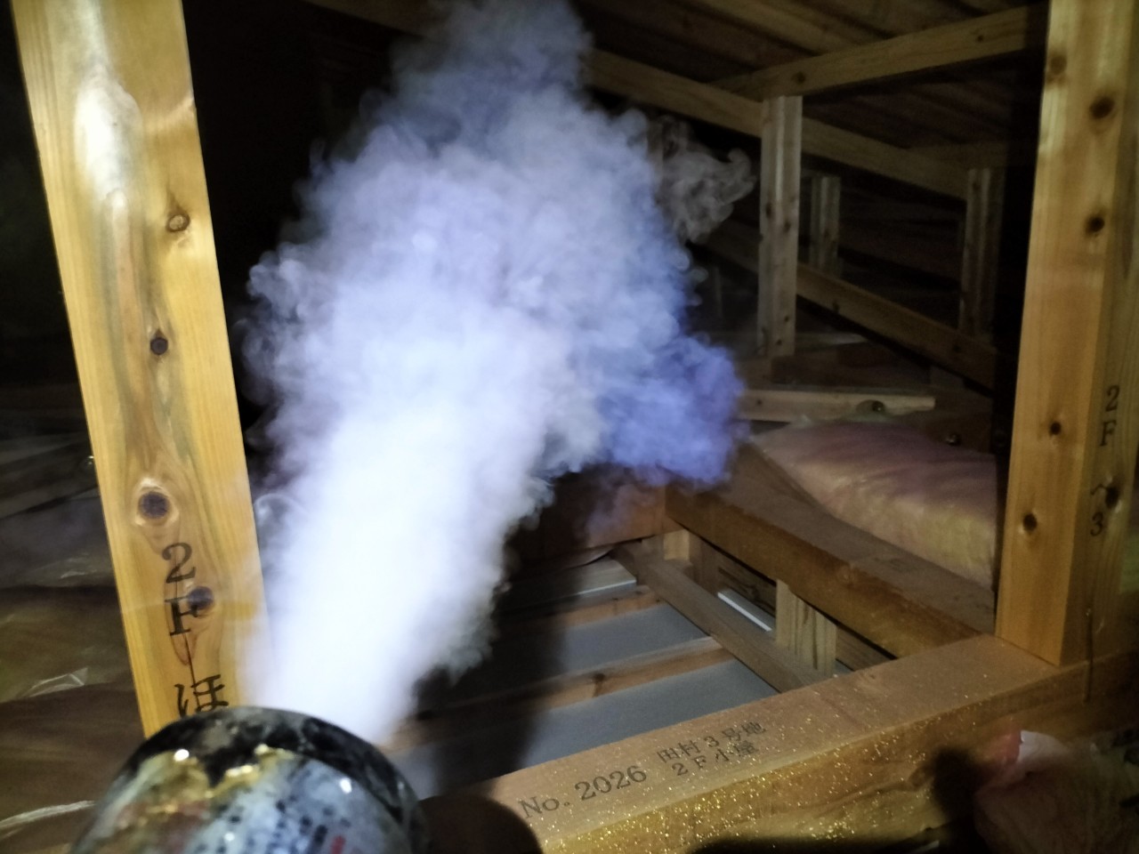 まずは、燻煙剤を使って屋内に潜んでいるコウモリを追い出します。