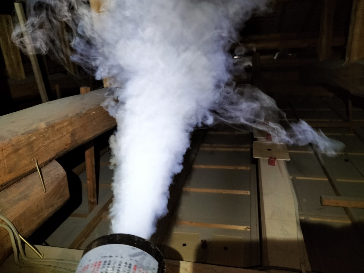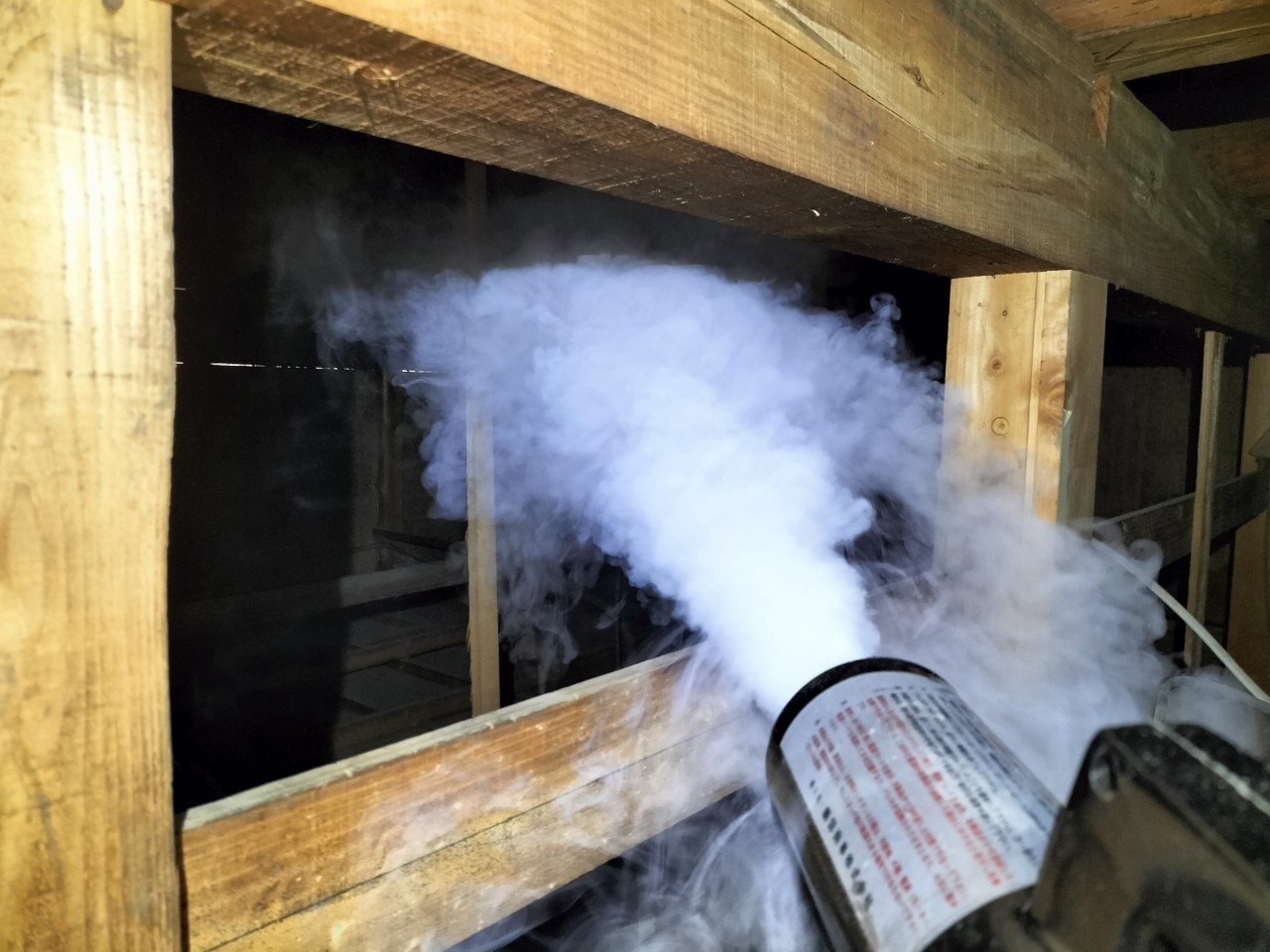 まずは、燻煙剤と呼ばれる薬剤を天井裏や床下に投入することで、イタチを追い出していきます。