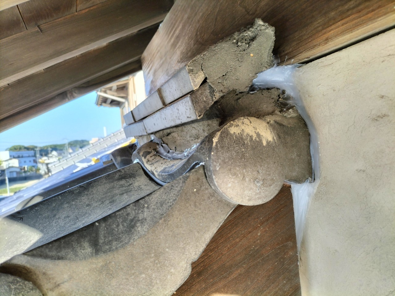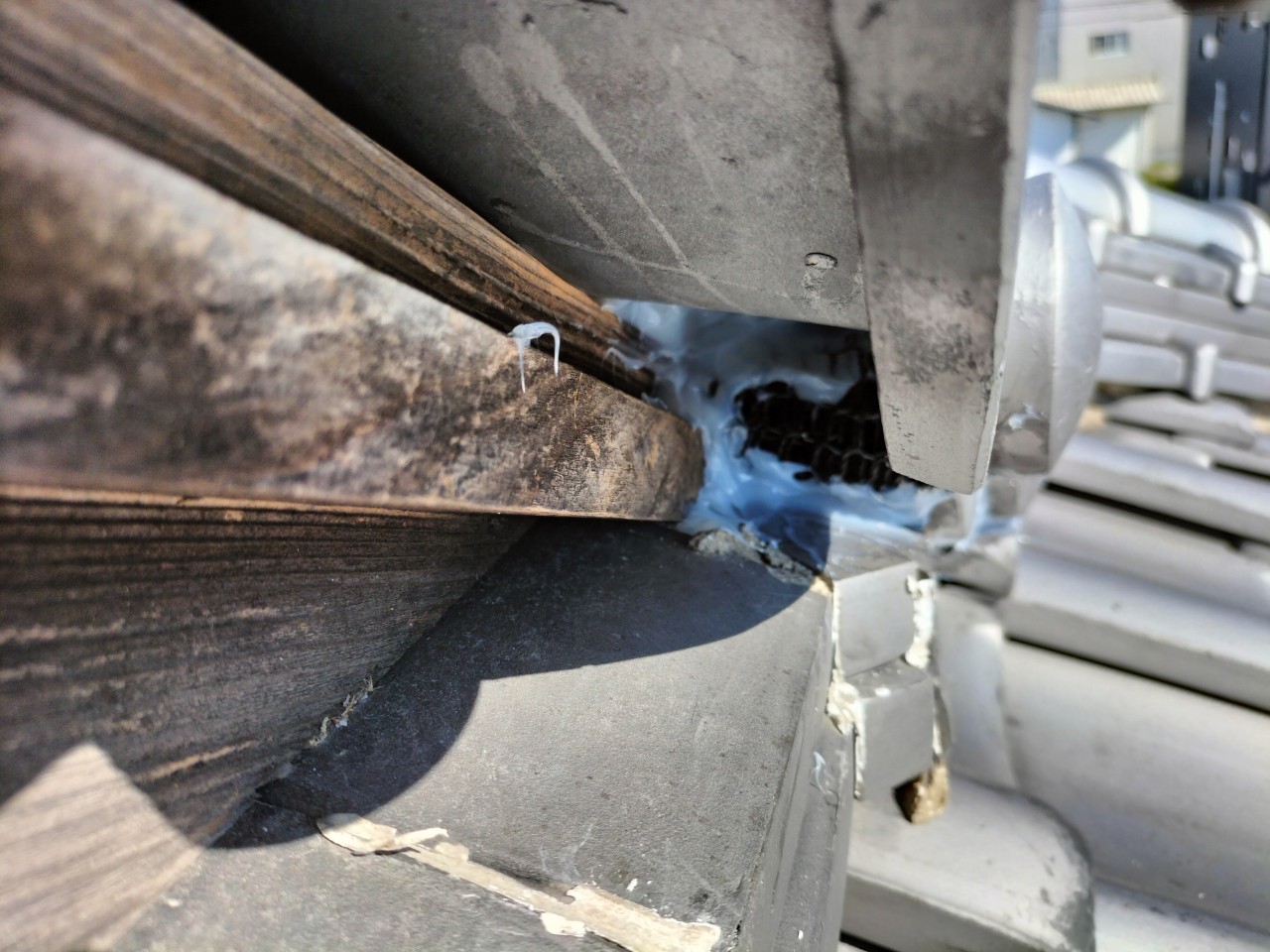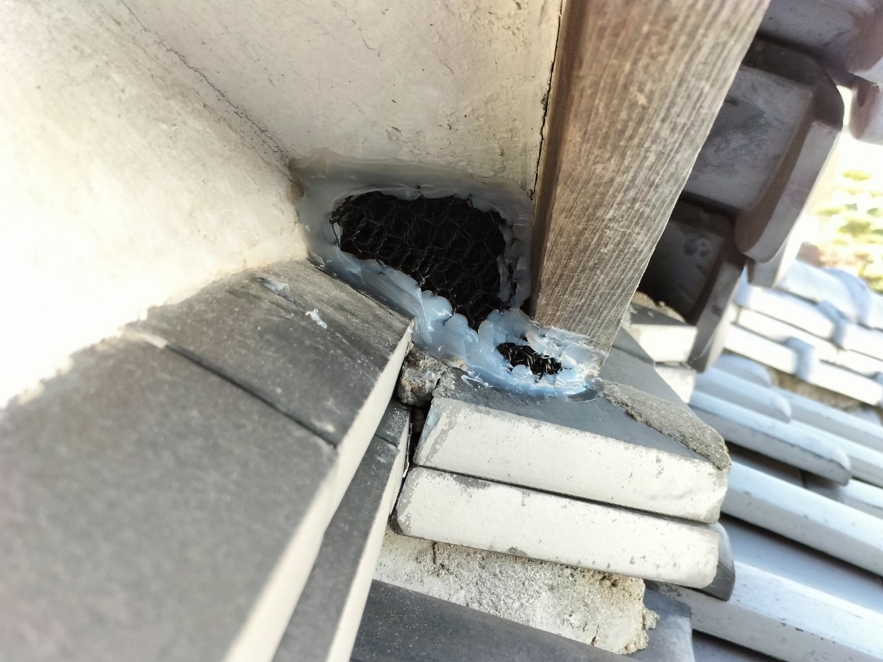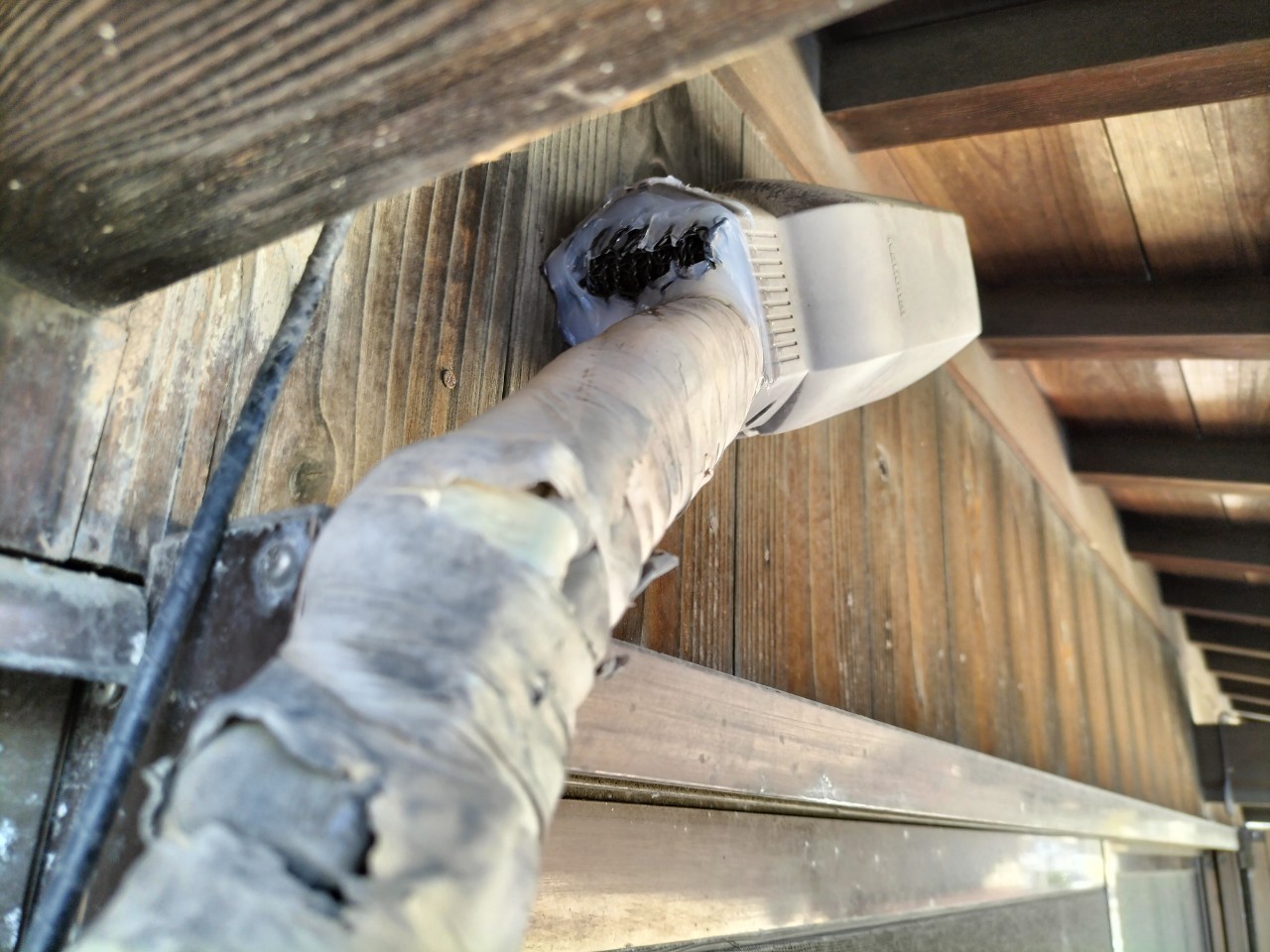 屋根の隙間や瓦の隙間、エアコン配管の隙間等がイタチの侵入経路と疑われました。