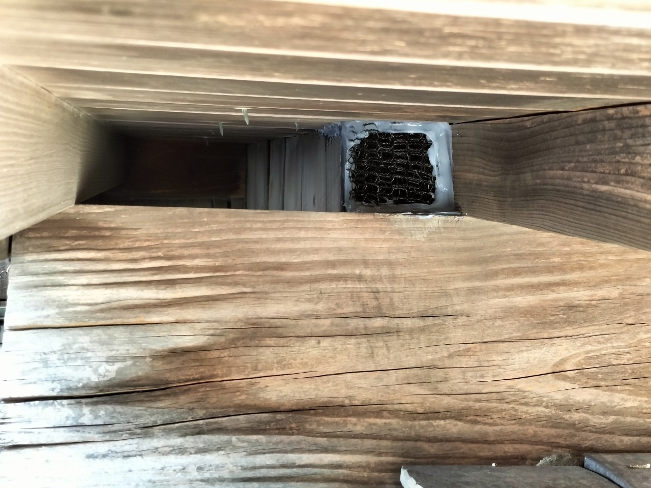続いて、パンチングメタルや金網、コーキング剤などを用いて、あらゆる侵入経路を封鎖していきます。これによりイタチに限らず、他の害獣の再侵入も防ぐことができます。