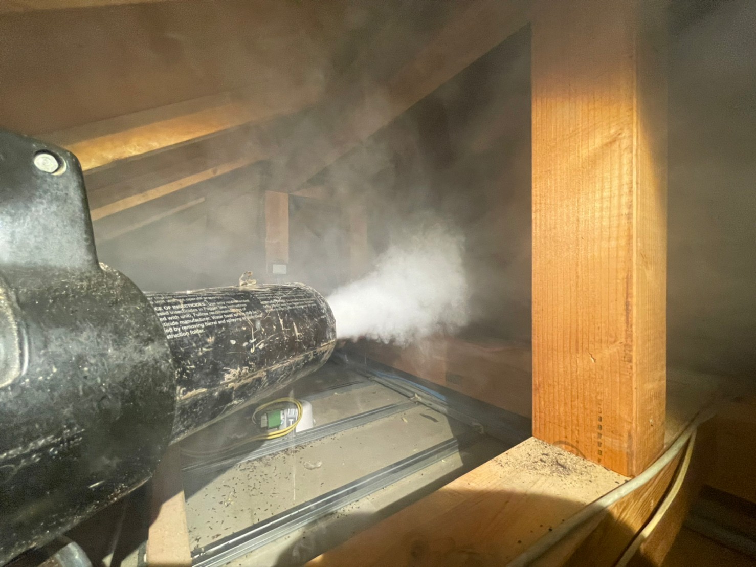 まずは、燻煙剤を使って屋内に潜んでいるコウモリを追い出します。