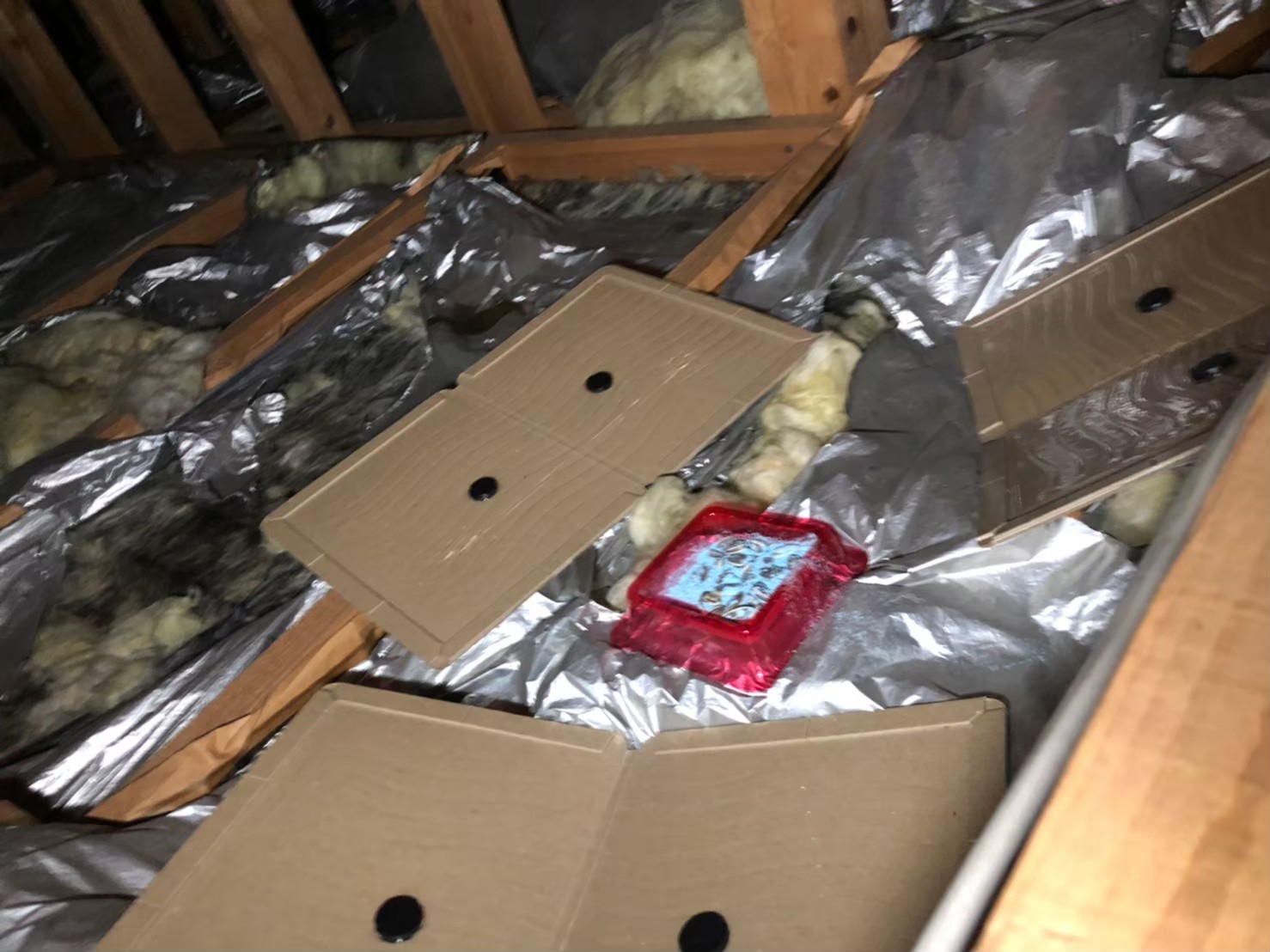 換気口やエアコン配管の隙間、屋根の隙間、床下通風口等がネズミの侵入経路と疑われました。