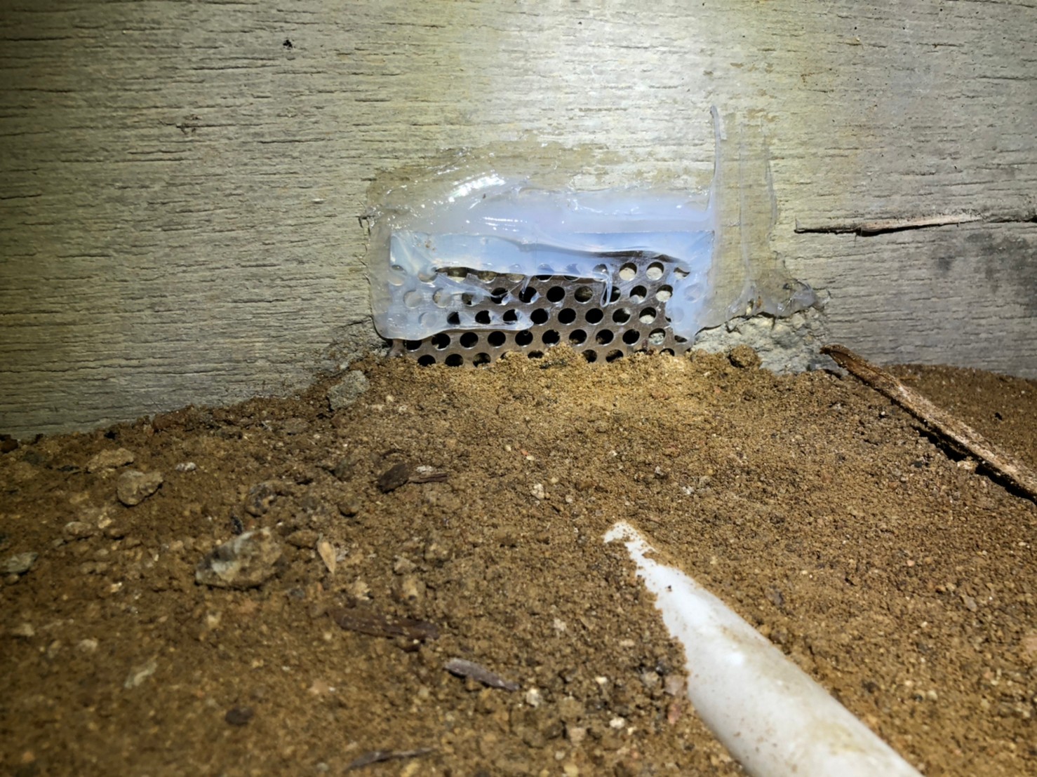 続いて、パンチングメタルや金網、コーキング剤などを用いて、あらゆる侵入経路を封鎖していきます。これによりネズミに限らず、他の害獣の再侵入も防ぐことができます。