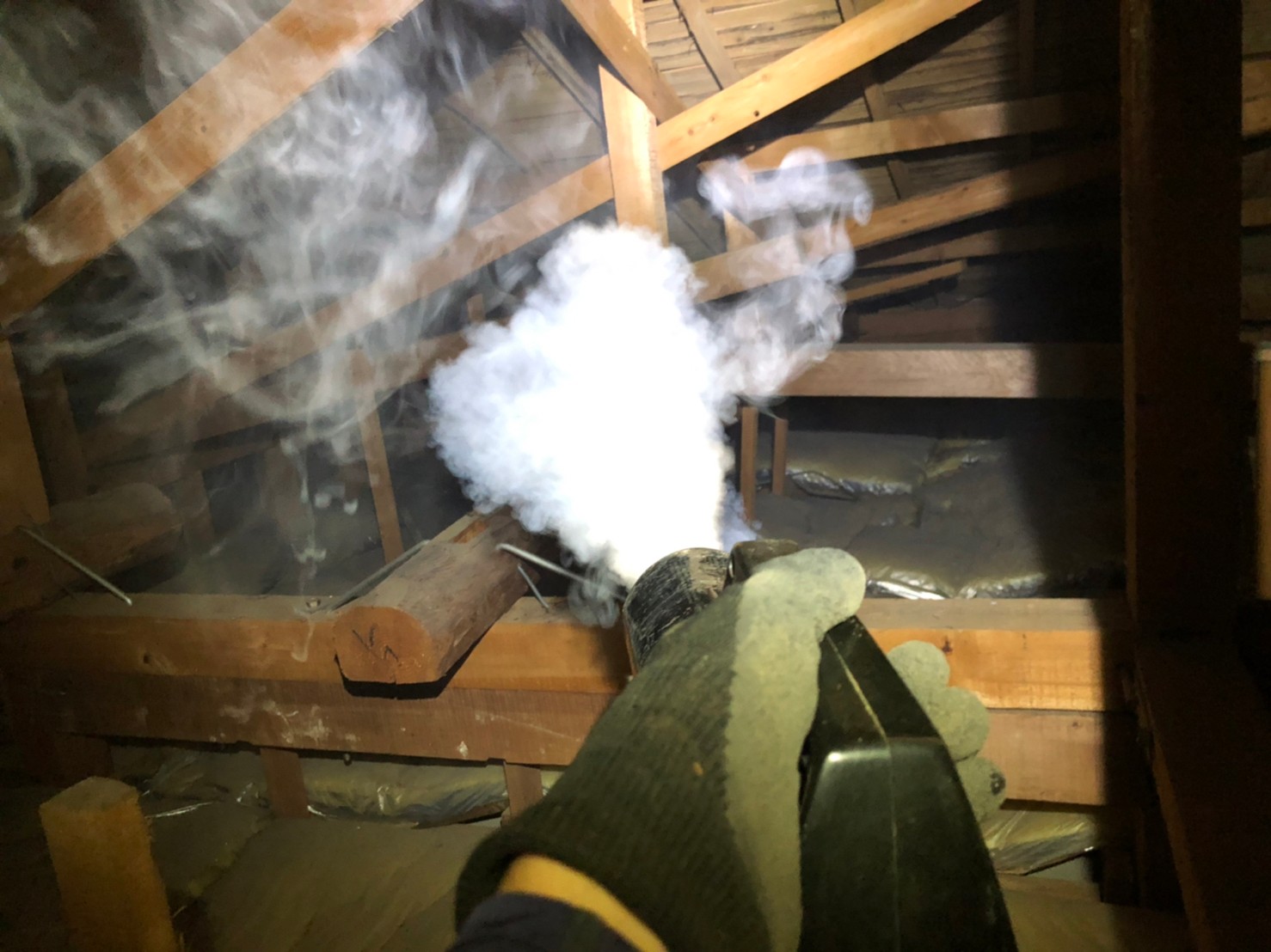 まずは、燻煙剤を使って屋内に潜んでいるネズミを追い出します。