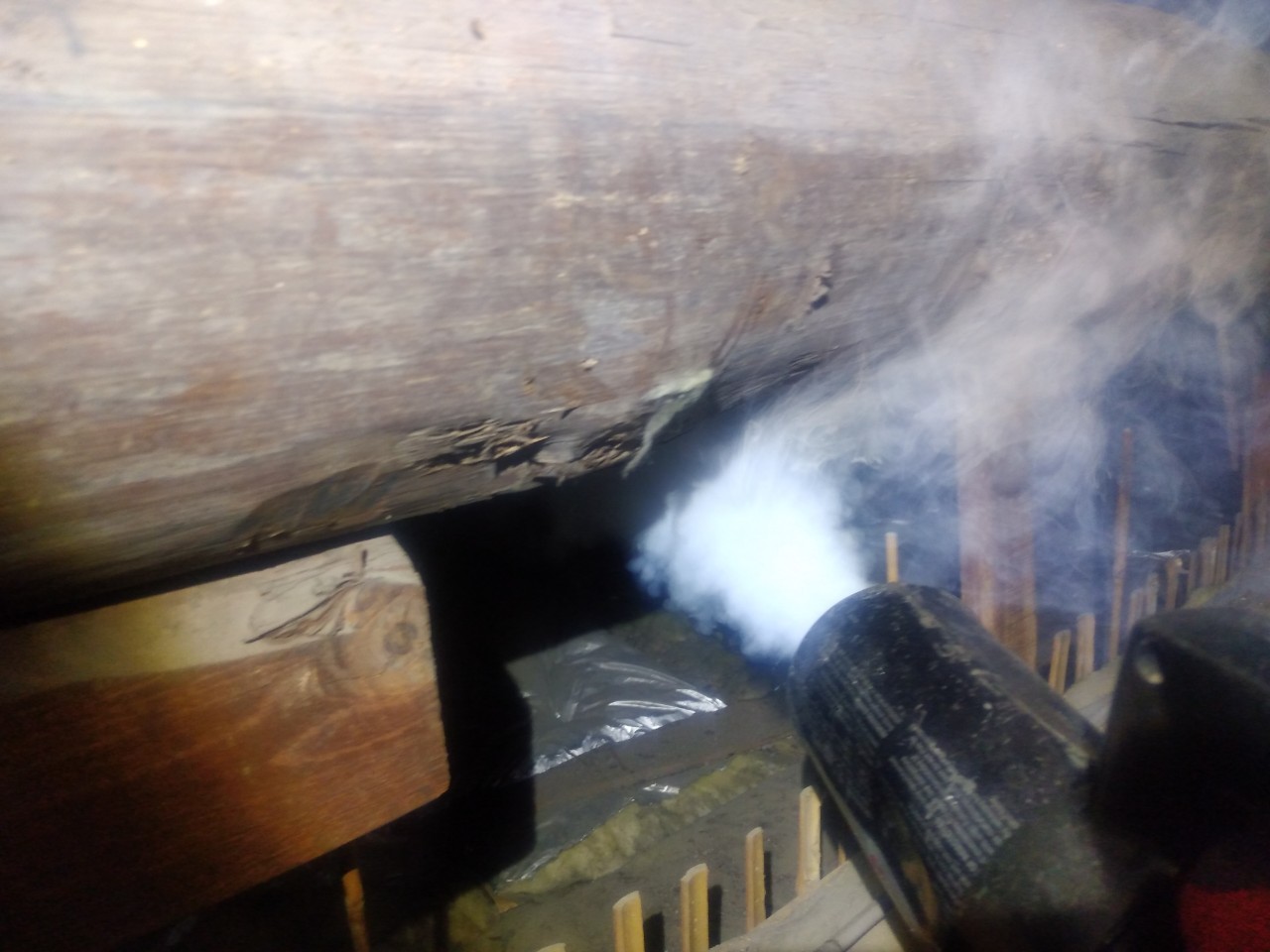 まずは、燻煙剤を使って屋内に潜んでいるイタチを追い出します。