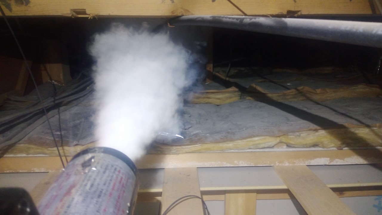 まずは、燻煙剤と呼ばれる薬剤を天井裏や床下に投入することで、イタチを追い出していきます。