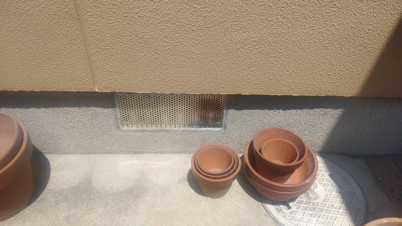 床下通風口や軒天の隙間、換気口等がイタチの侵入経路と疑われました。