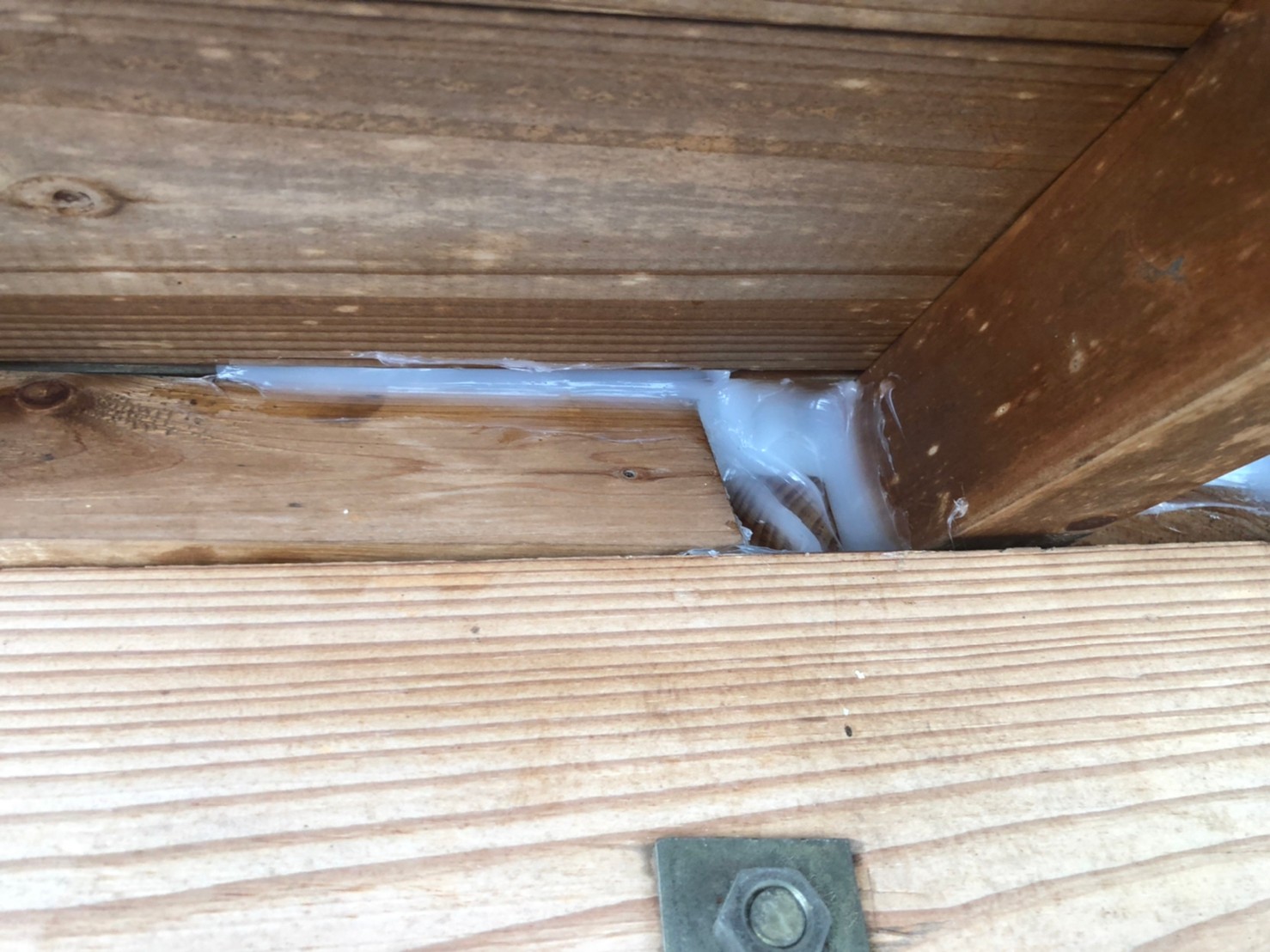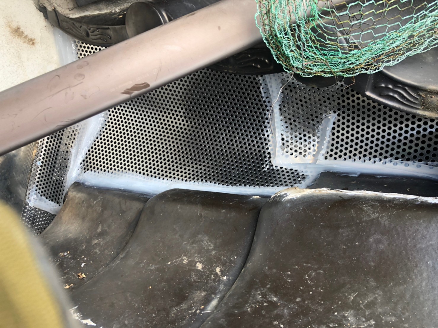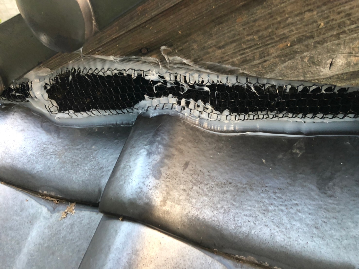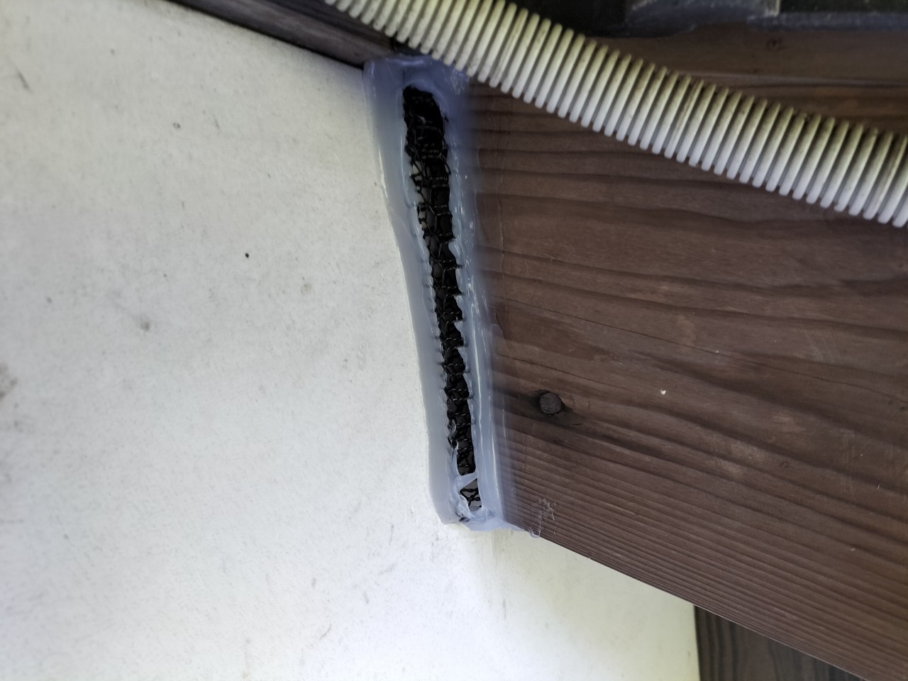 続いて、ネズミ、アライグマの再侵入を防ぐために、パンチングメタルや金網、コーキング剤などを用いて侵入経路の封鎖を行います。