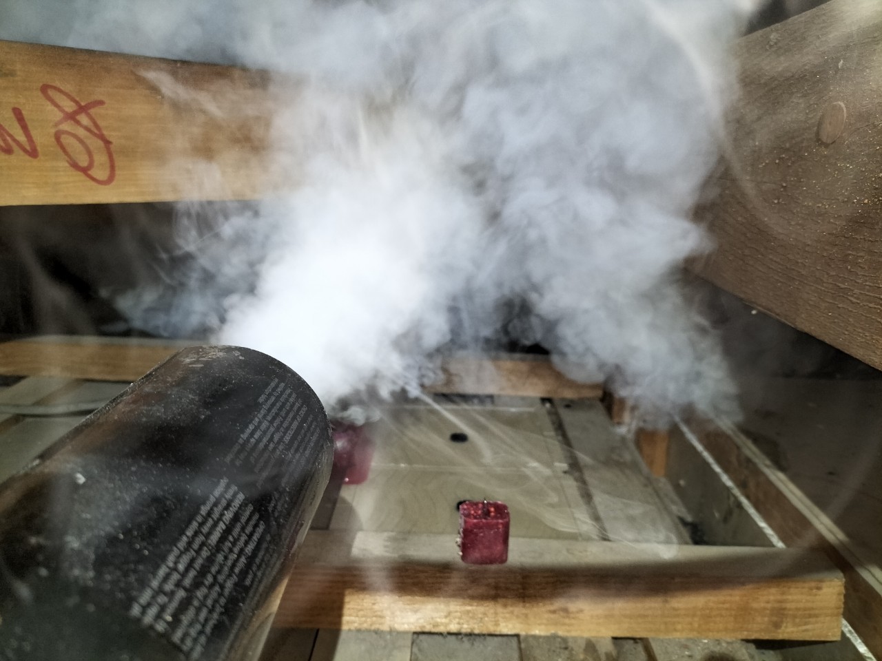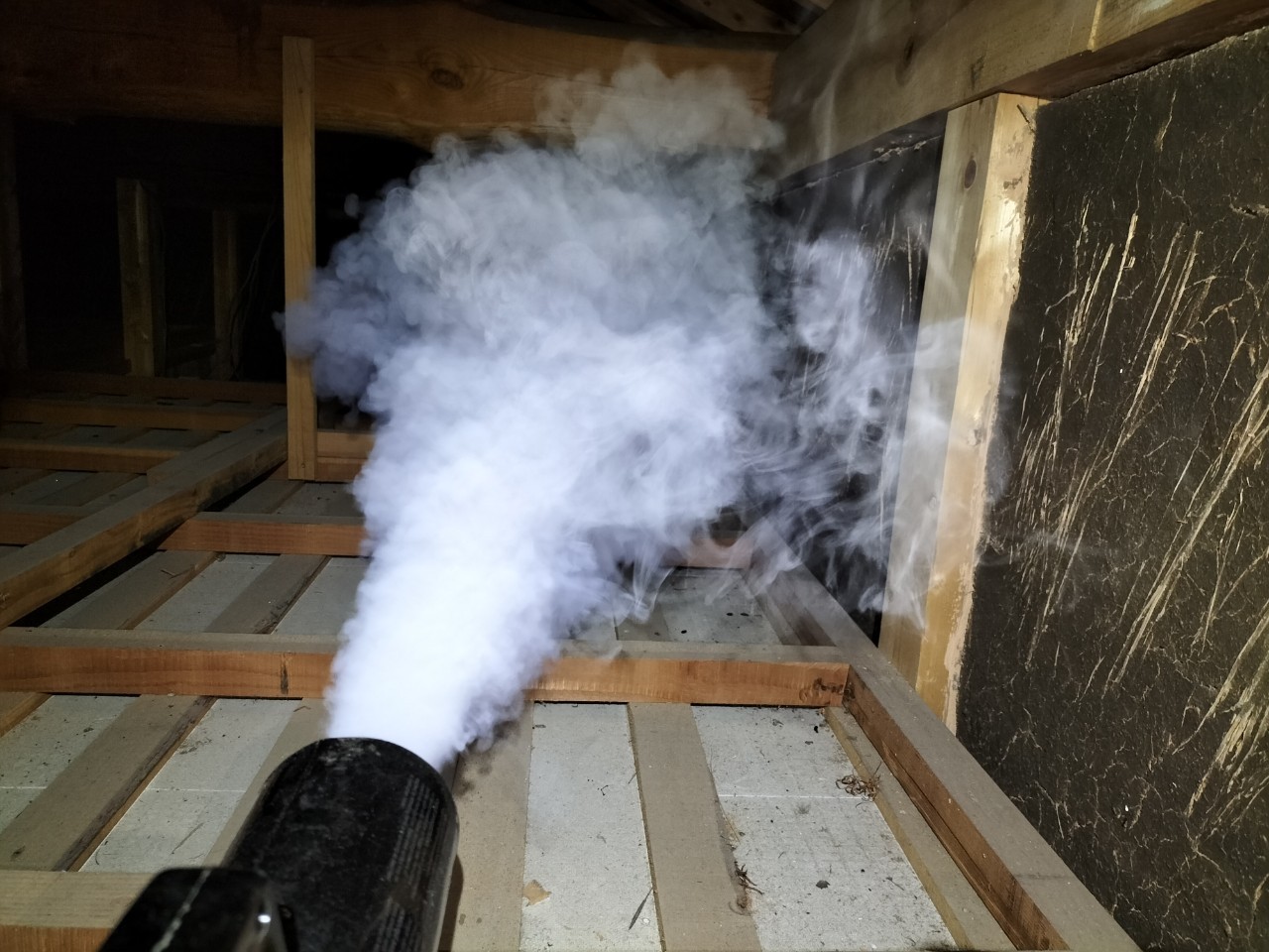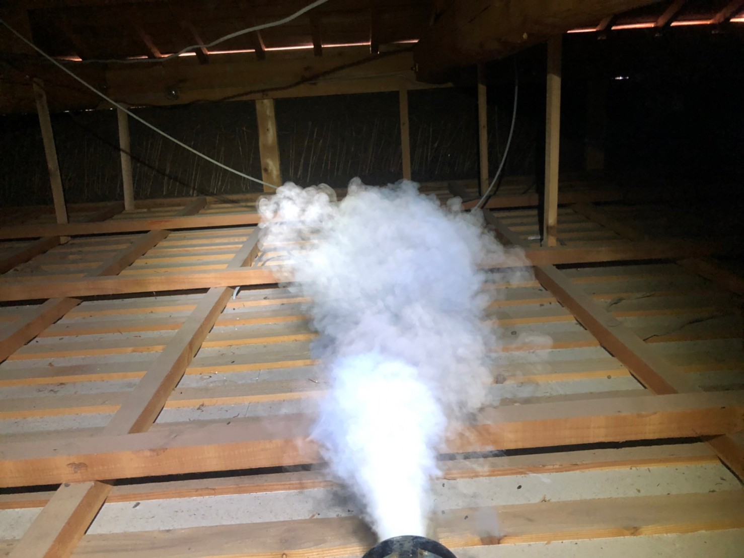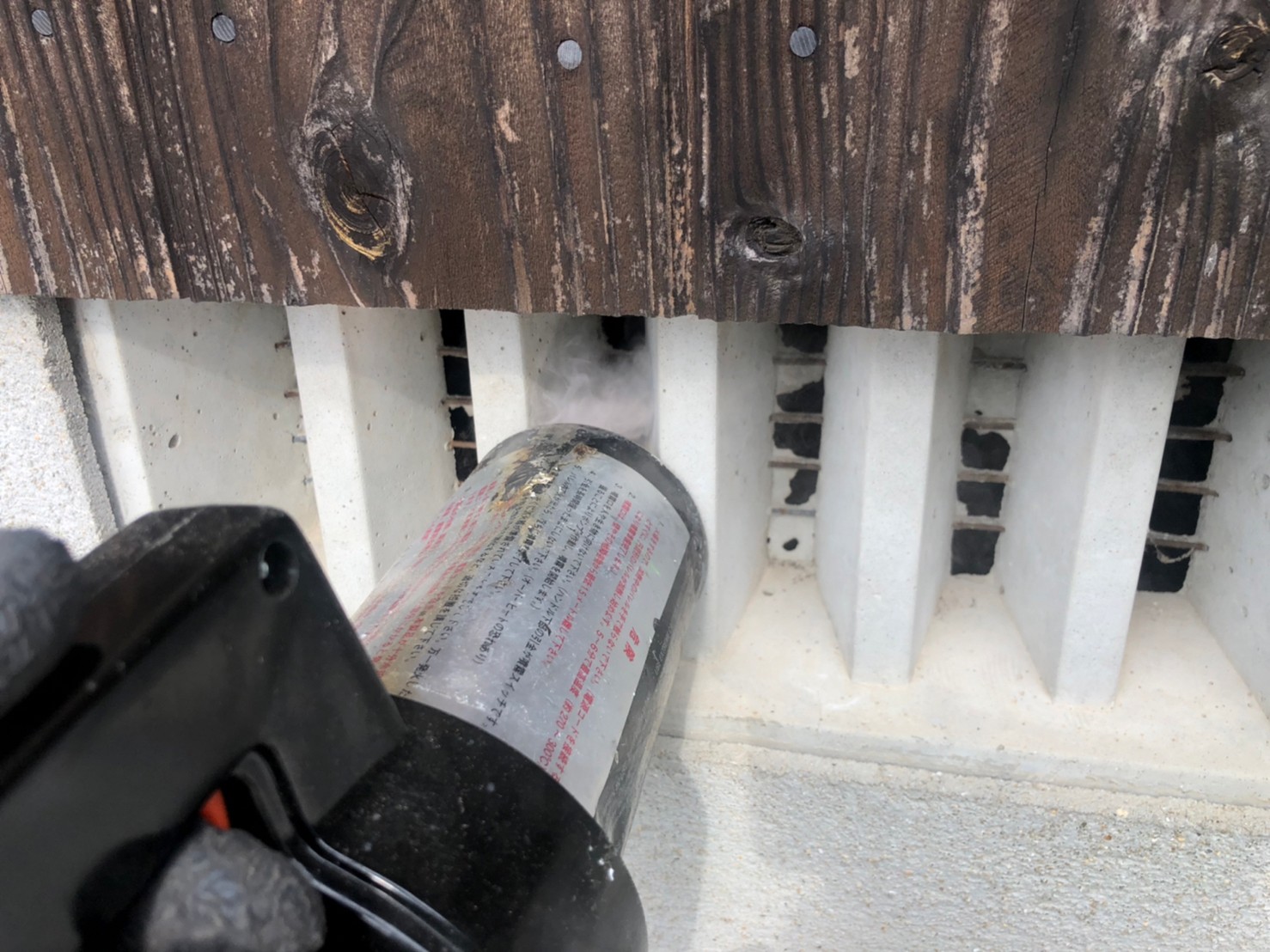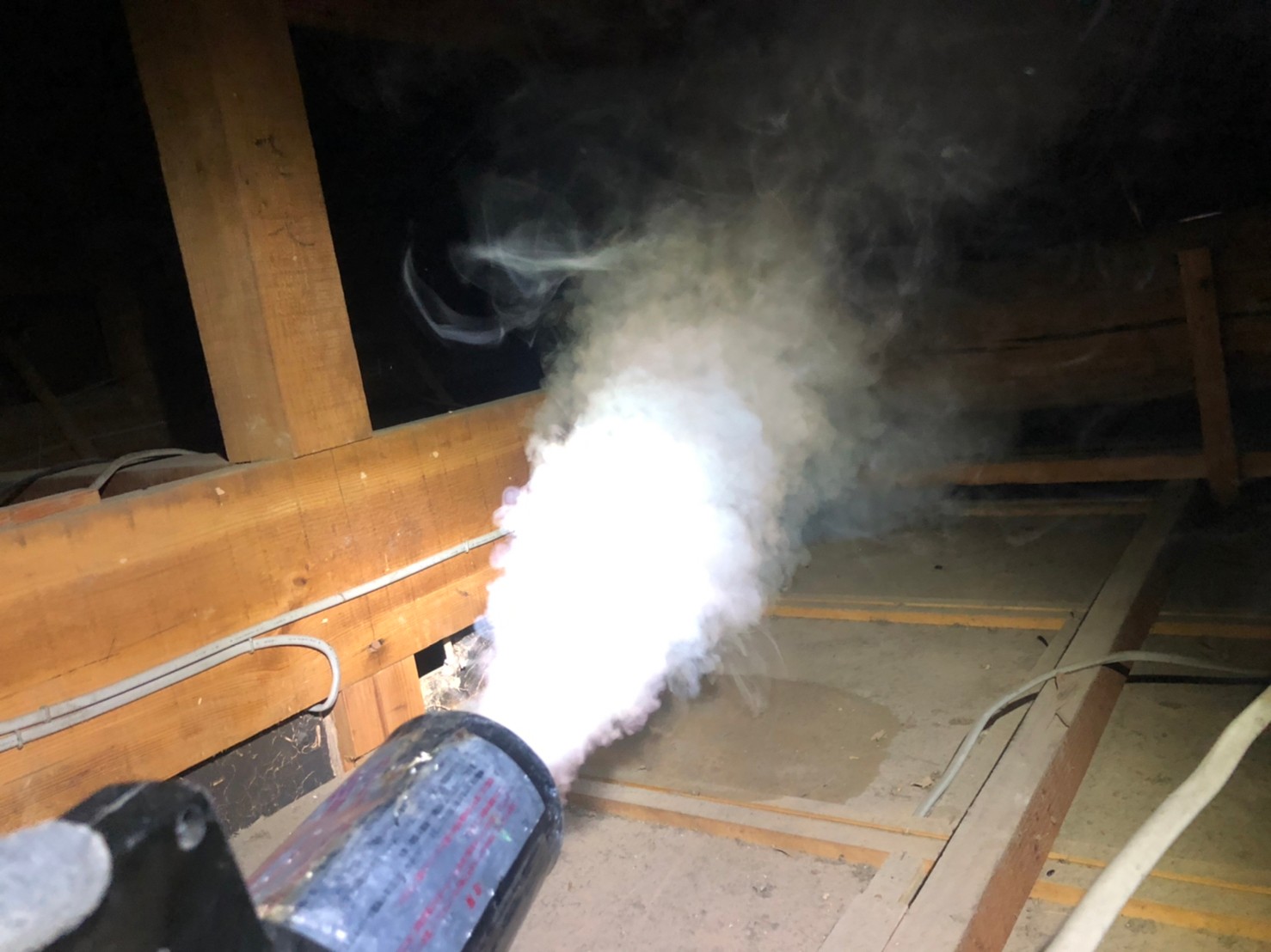まずは、燻煙剤を使って屋内に潜んでいるネズミ、アライグマを追い出します。