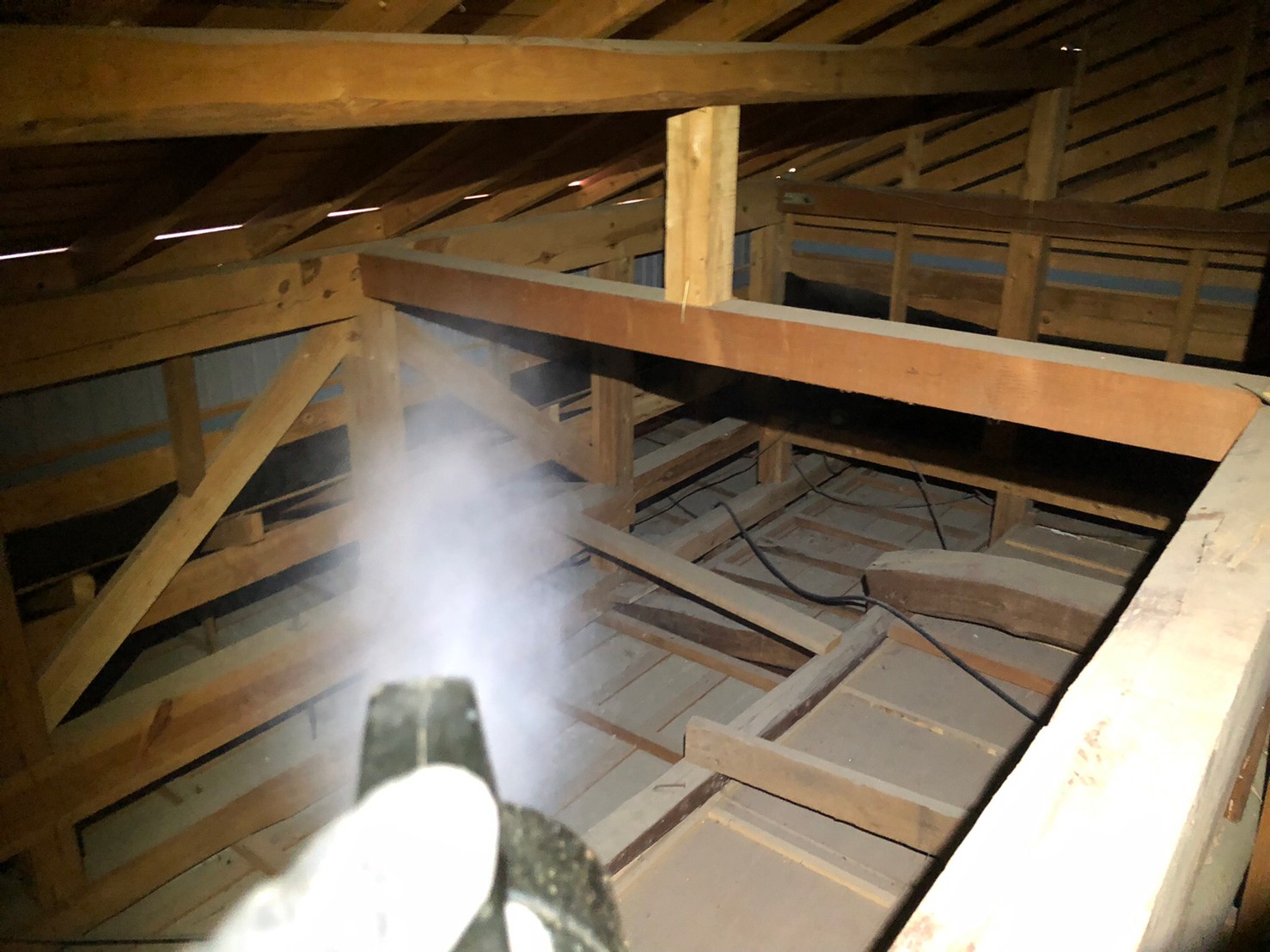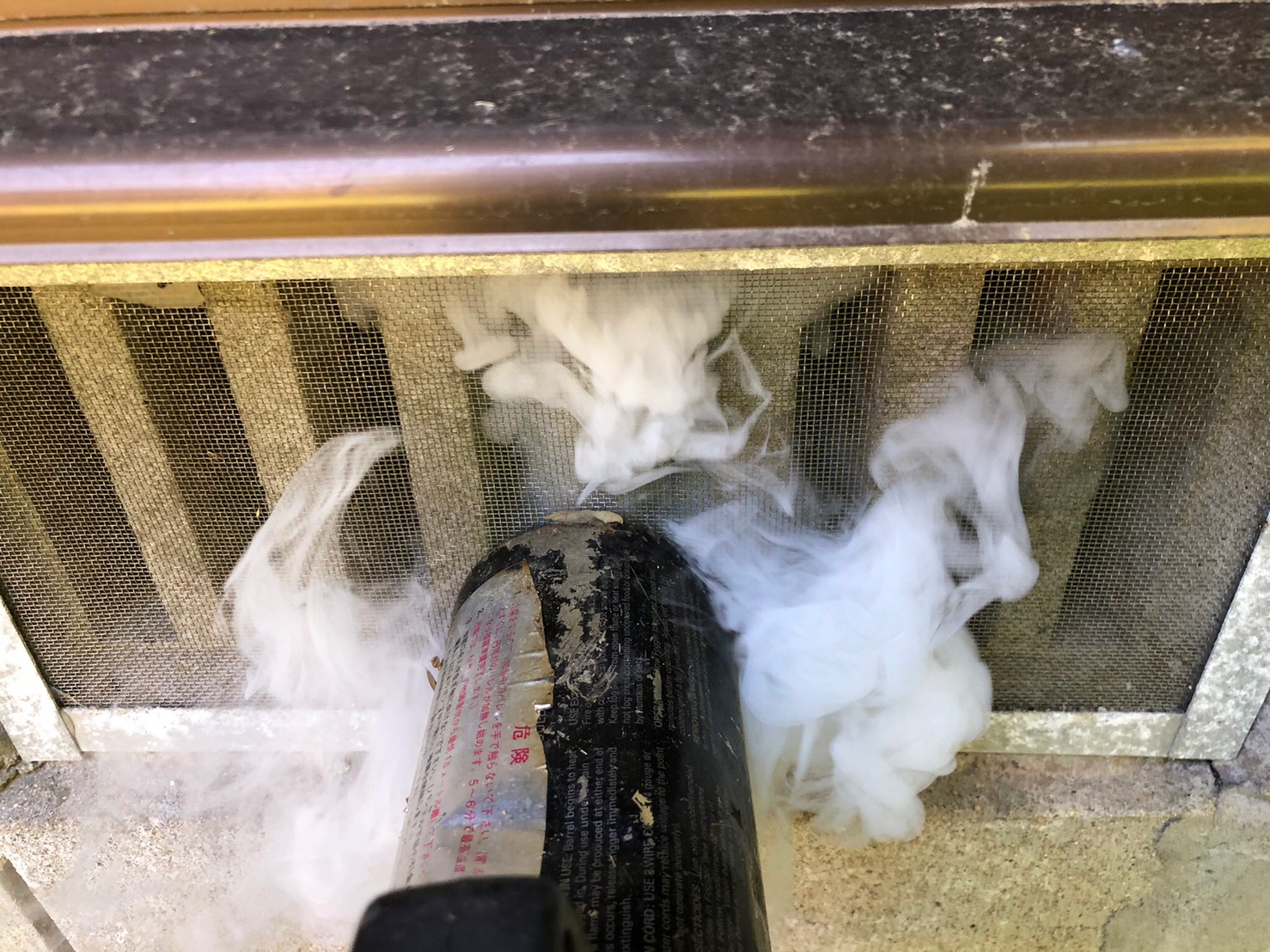 まずは、燻煙剤と呼ばれる薬剤を天井裏や床下に投入することで、アライグマを追い出していきます。