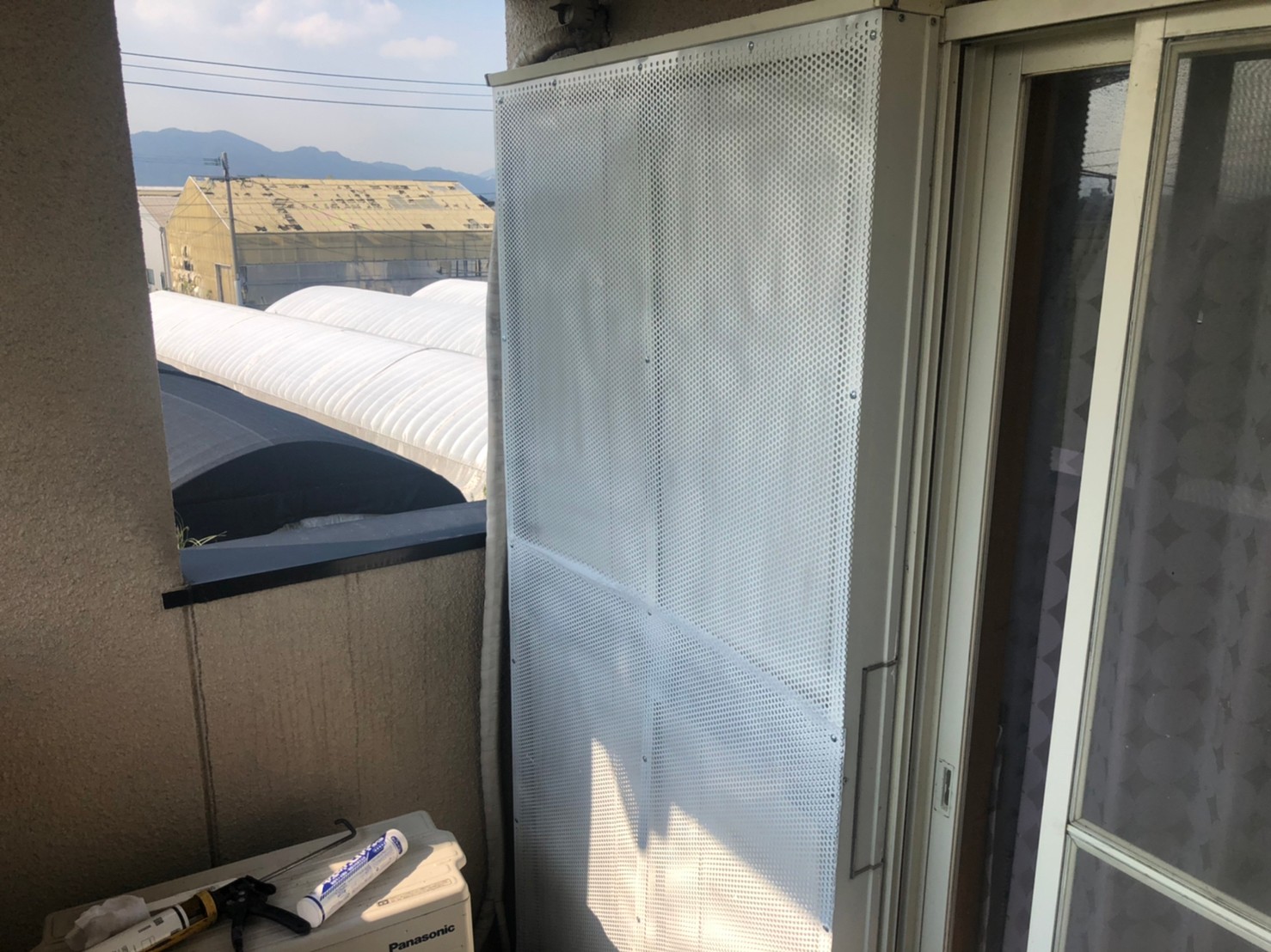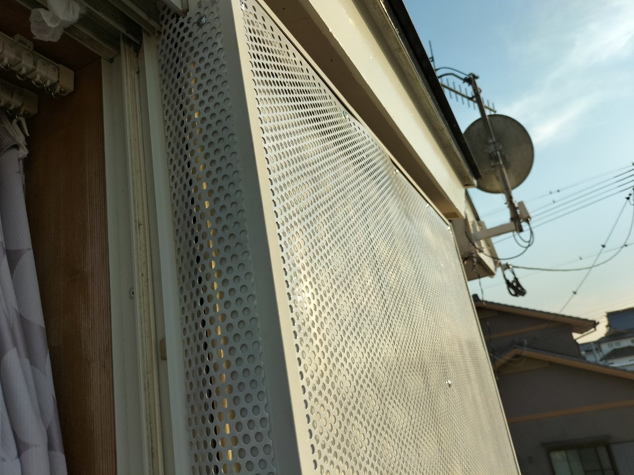 続いて、ネズミ、コウモリの再侵入を防ぐために、パンチングメタルや金網、コーキング剤などを用いて侵入経路の封鎖を行います。