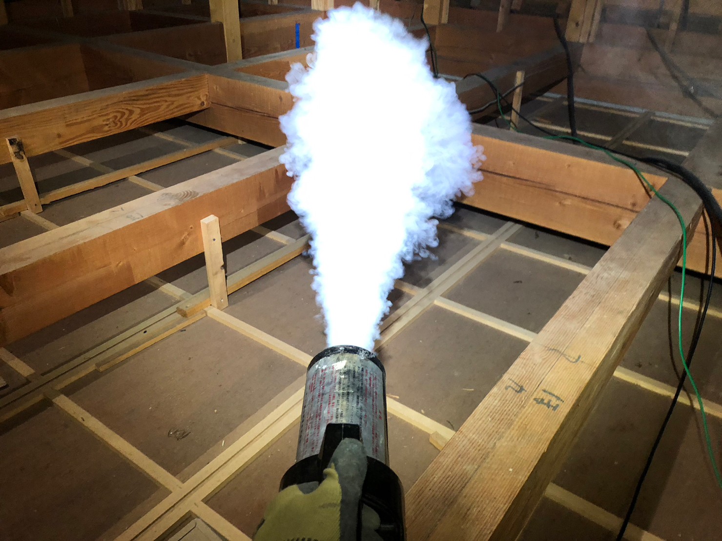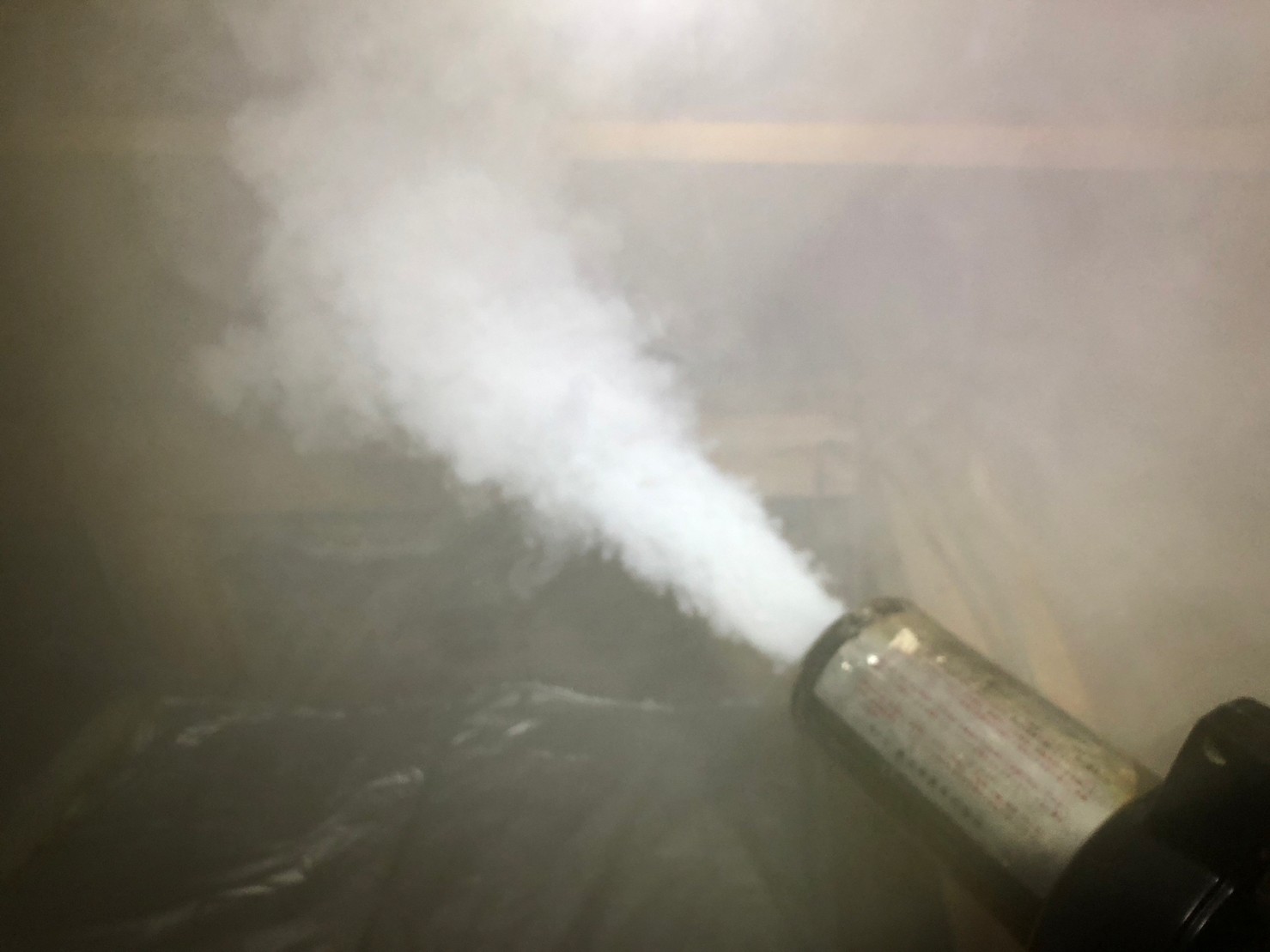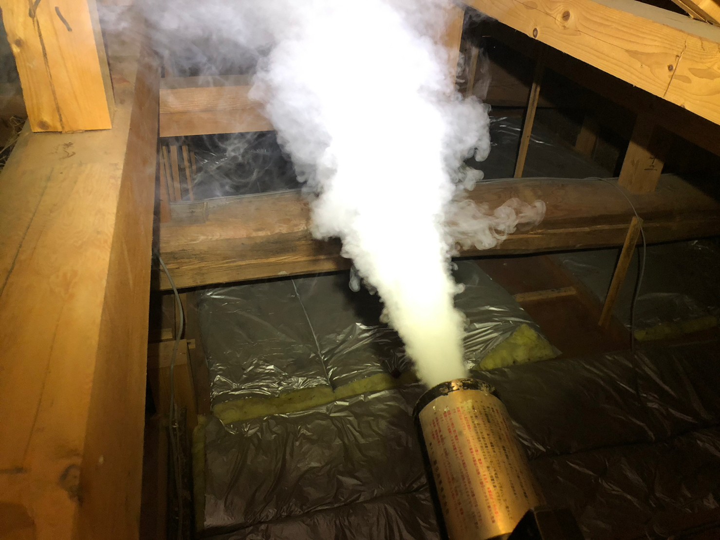 まずは、燻煙剤を使って屋内に潜んでいるネズミ、イタチを追い出します。