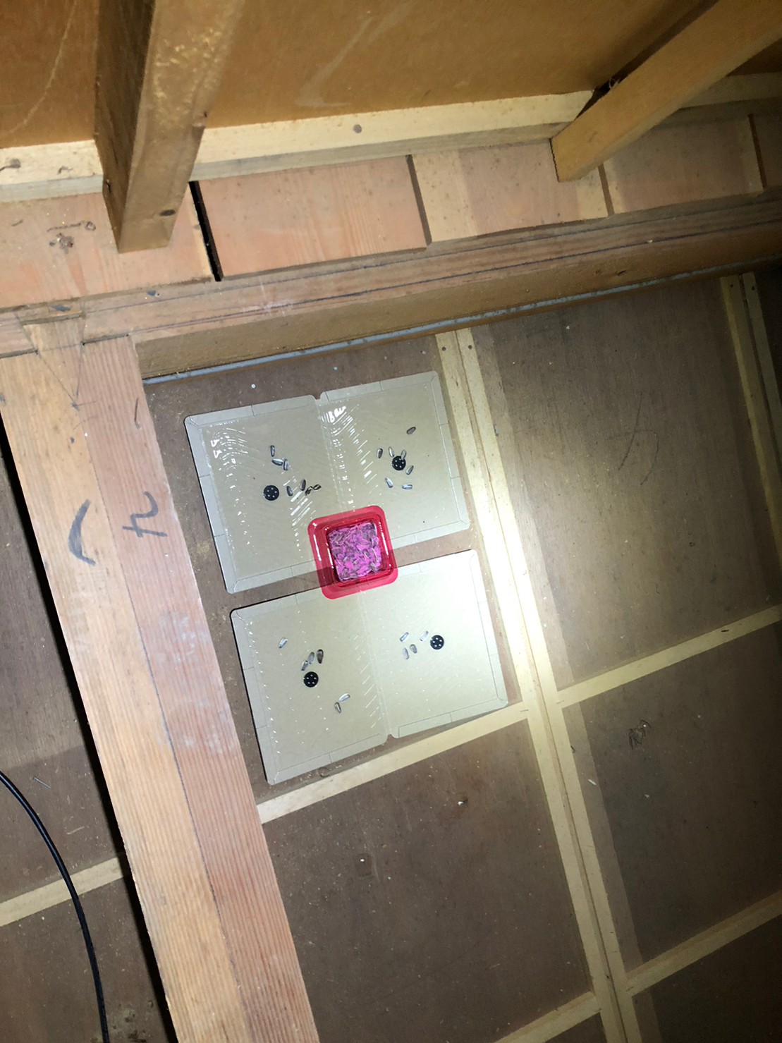 最後に、糞清掃や殺菌・消毒、マーキング消臭、ノミ・ダニ駆除、毒エサ・トラップ設置といった残りの作業を行い、駆除~再発防止までの工程が全て終了します。