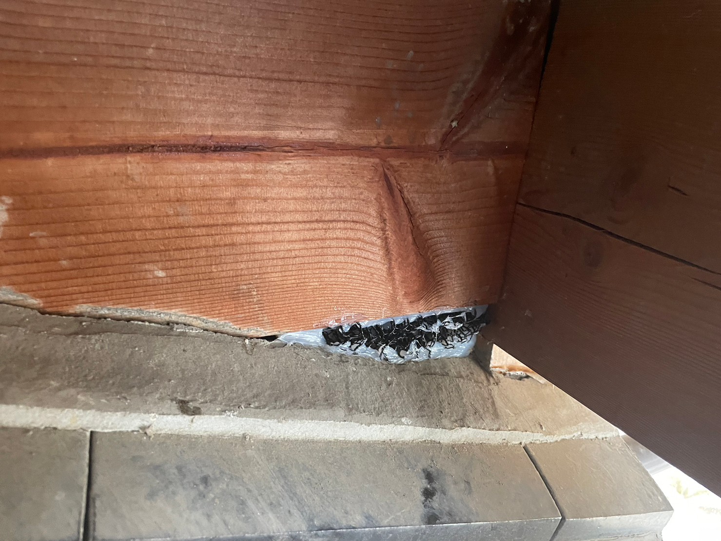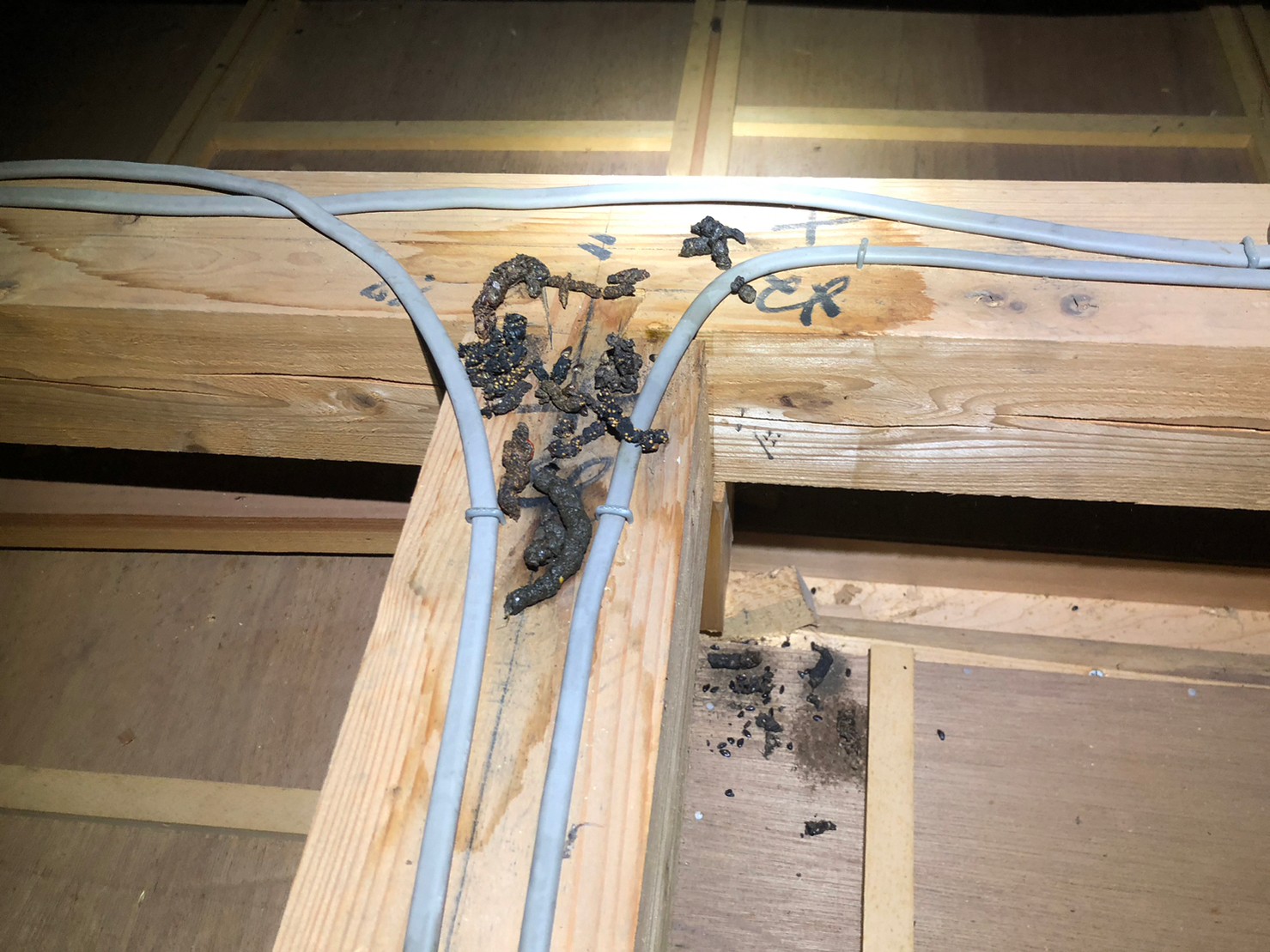 エアコン配管の隙間や床下通風口、瓦の隙間等がネズミ、イタチの侵入経路と疑われました。
