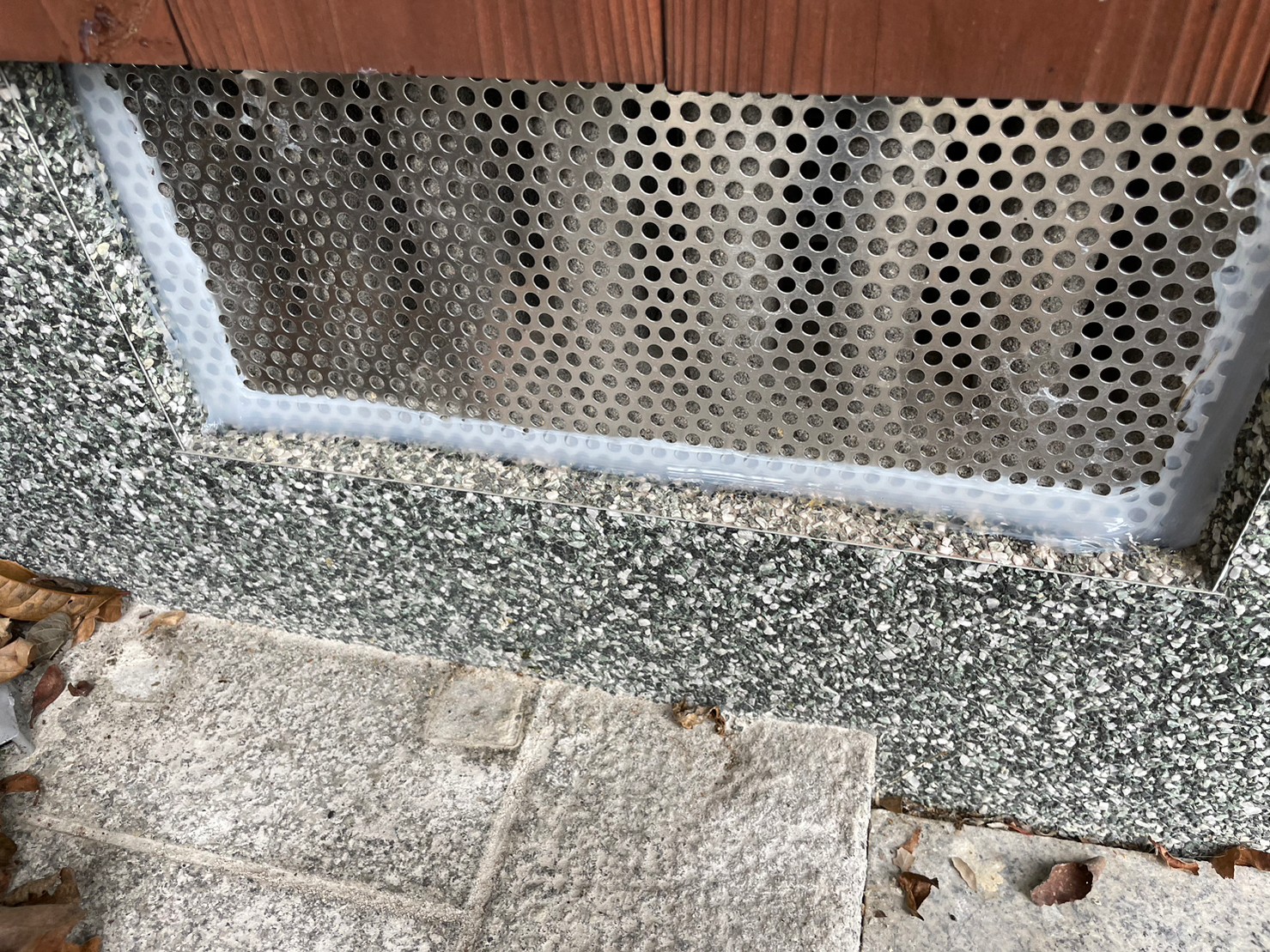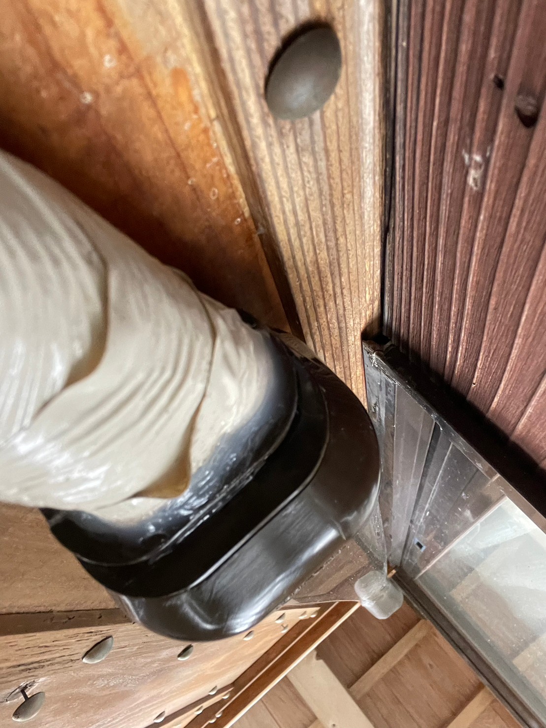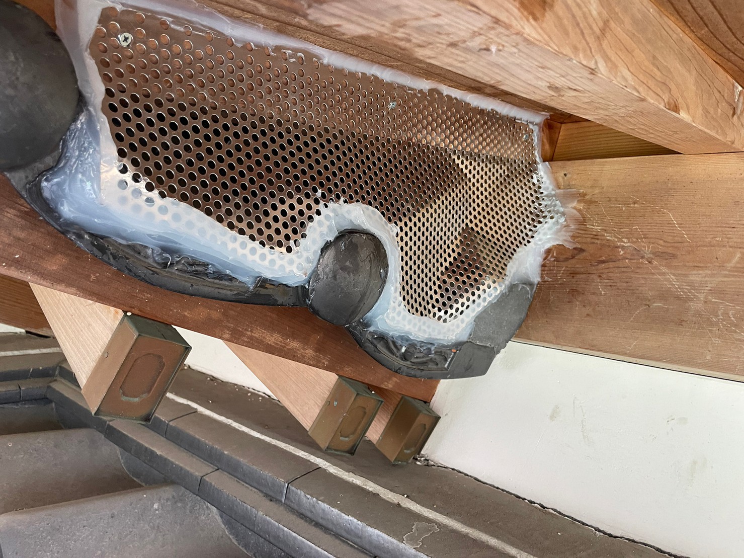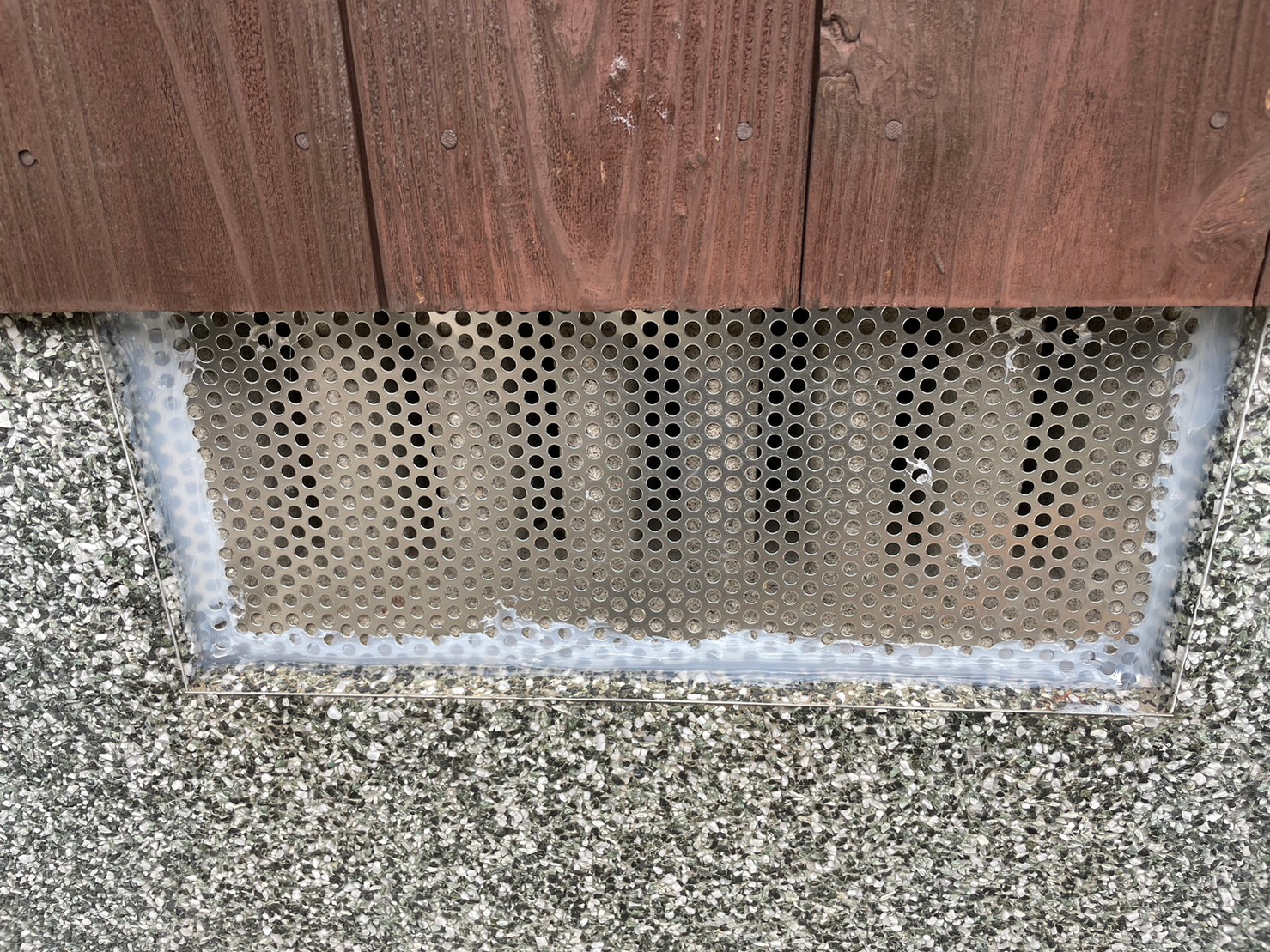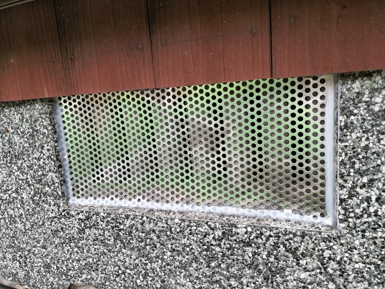 続いて、パンチングメタルや金網、コーキング剤などを用いて、あらゆる侵入経路を封鎖していきます。これによりネズミ、イタチに限らず、他の害獣の再侵入も防ぐことができます。