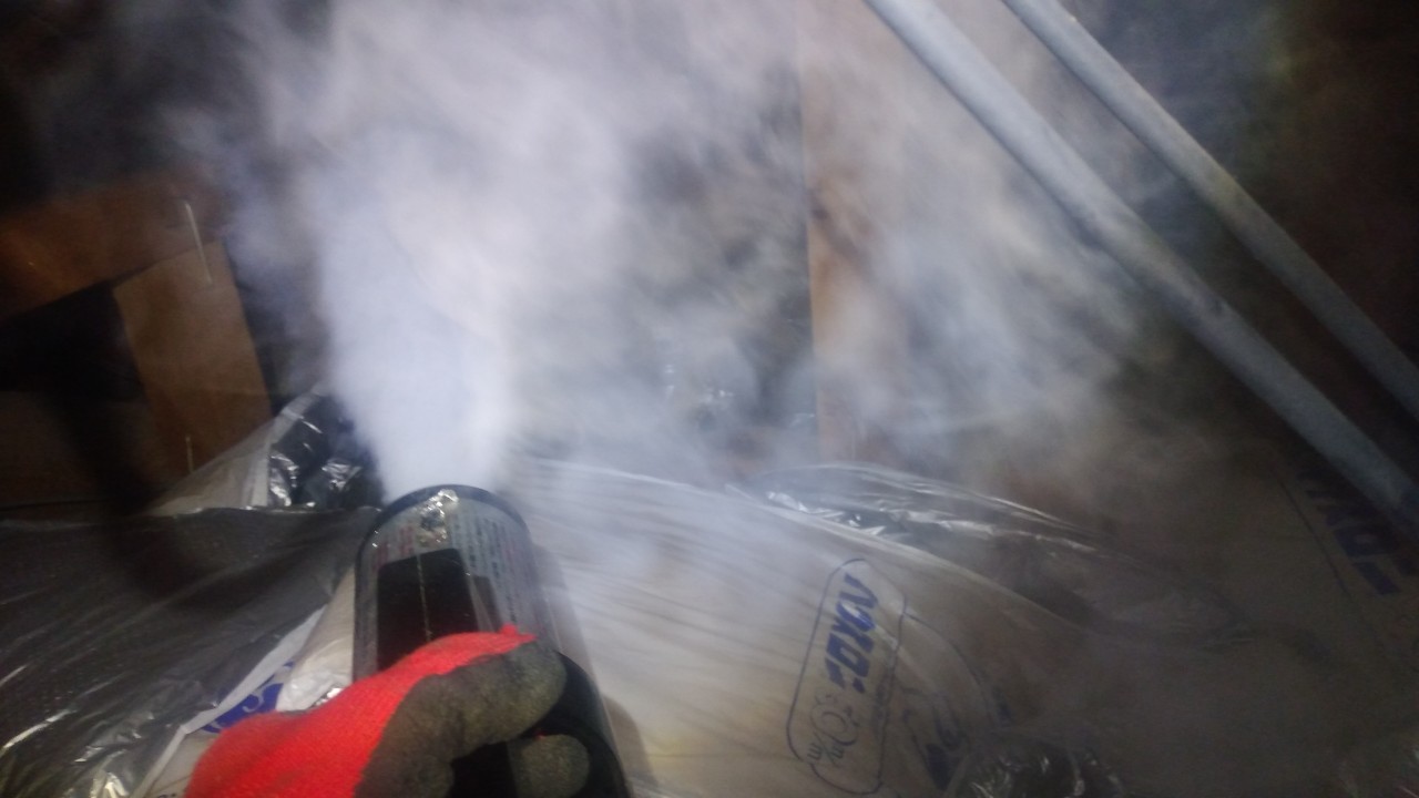 まずは、燻煙剤と呼ばれる薬剤を天井裏や床下に投入することで、ネズミ、イタチを追い出していきます。