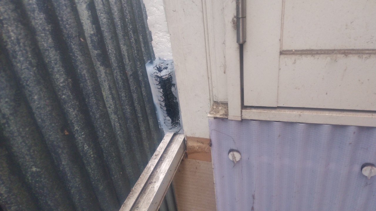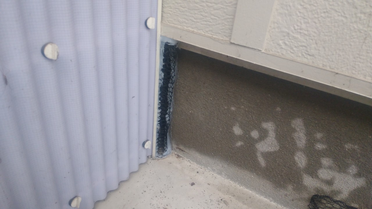 換気口や外壁の隙間、エアコン配管の隙間等がネズミ、イタチの侵入経路と疑われました。