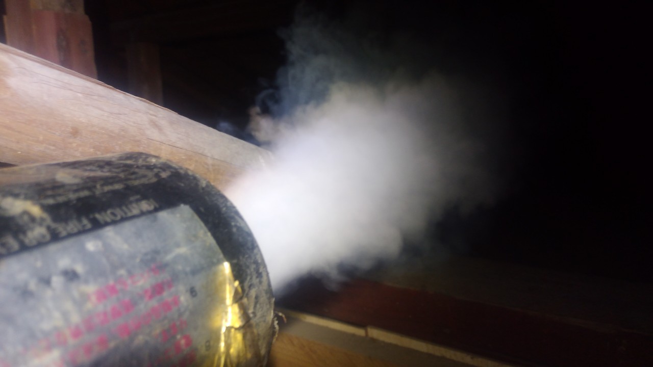 まずは、燻煙剤を使って屋内に潜んでいるイタチ、アライグマを追い出します。