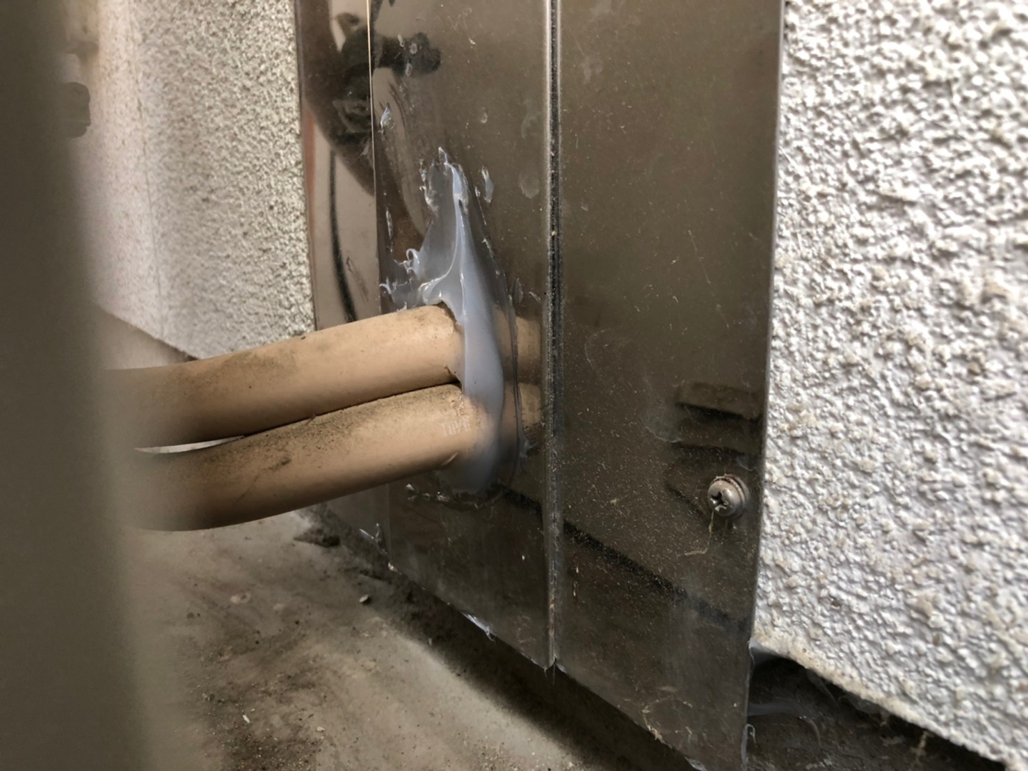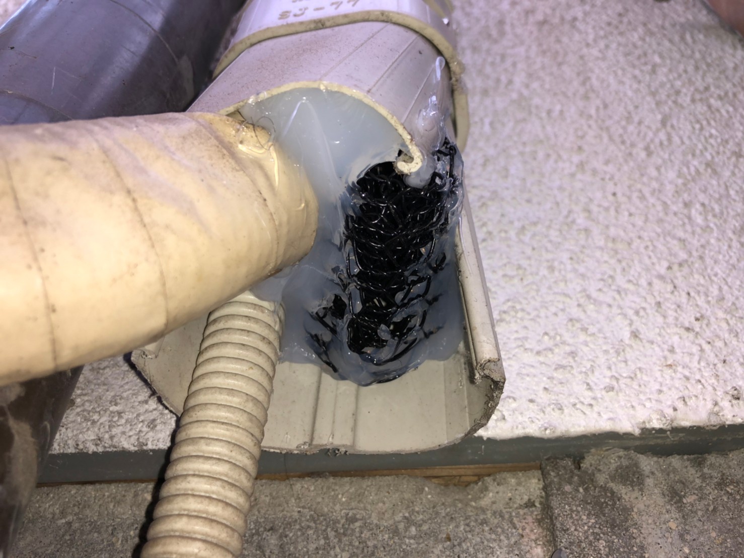 エアコン配管の隙間や外壁の隙間、床下通風口、屋根の隙間等がネズミ、イタチの侵入経路と疑われました。