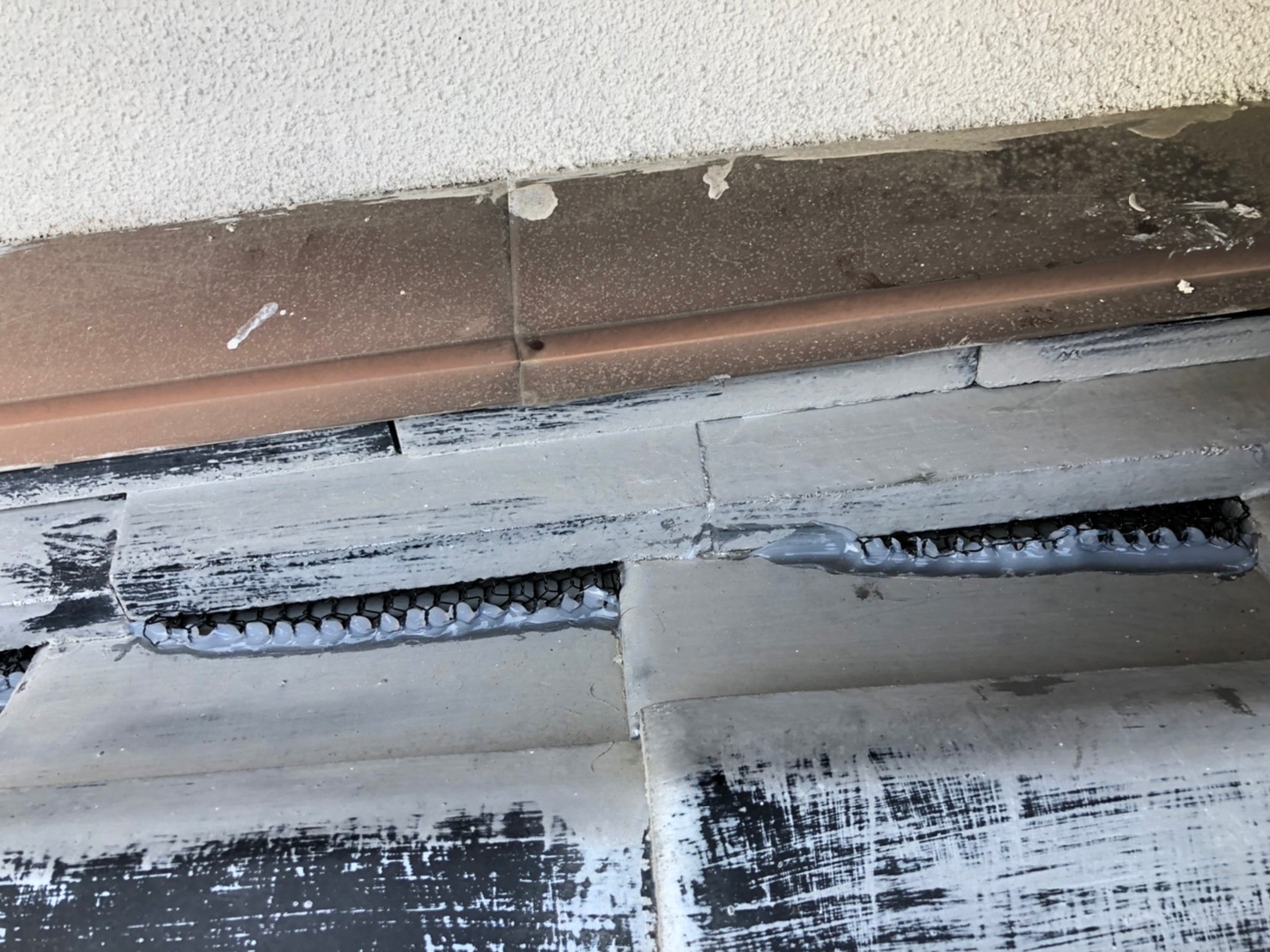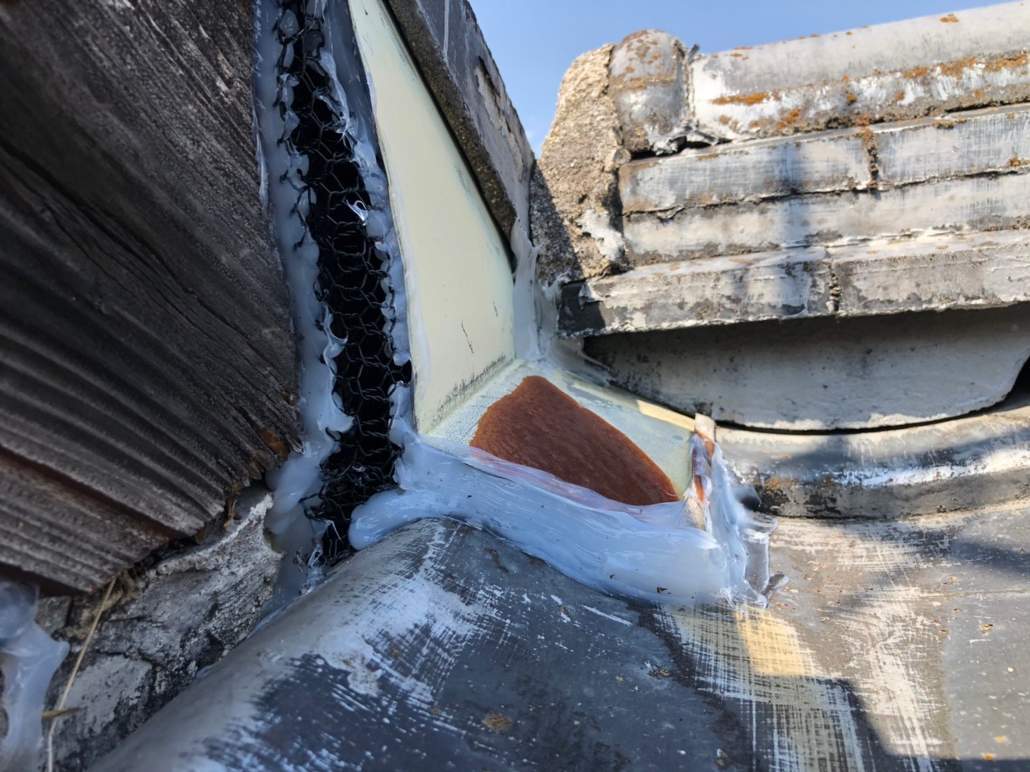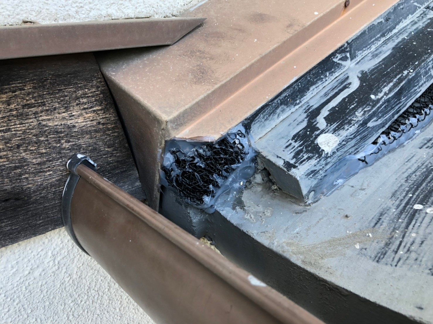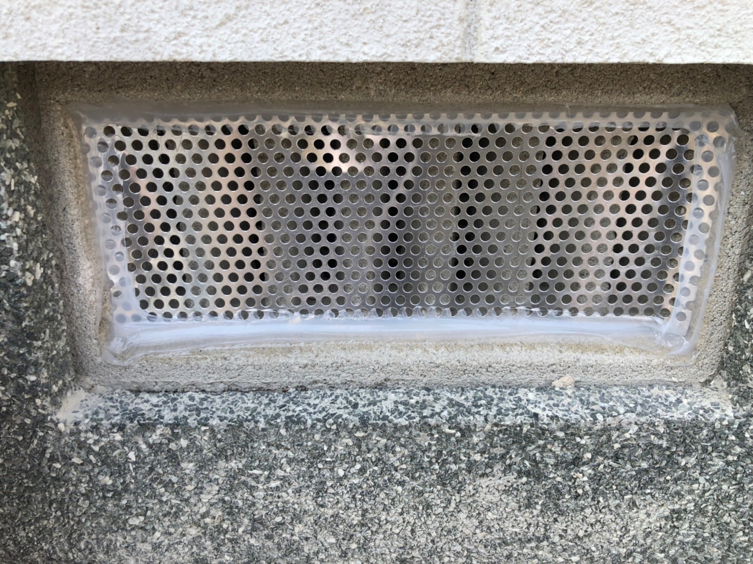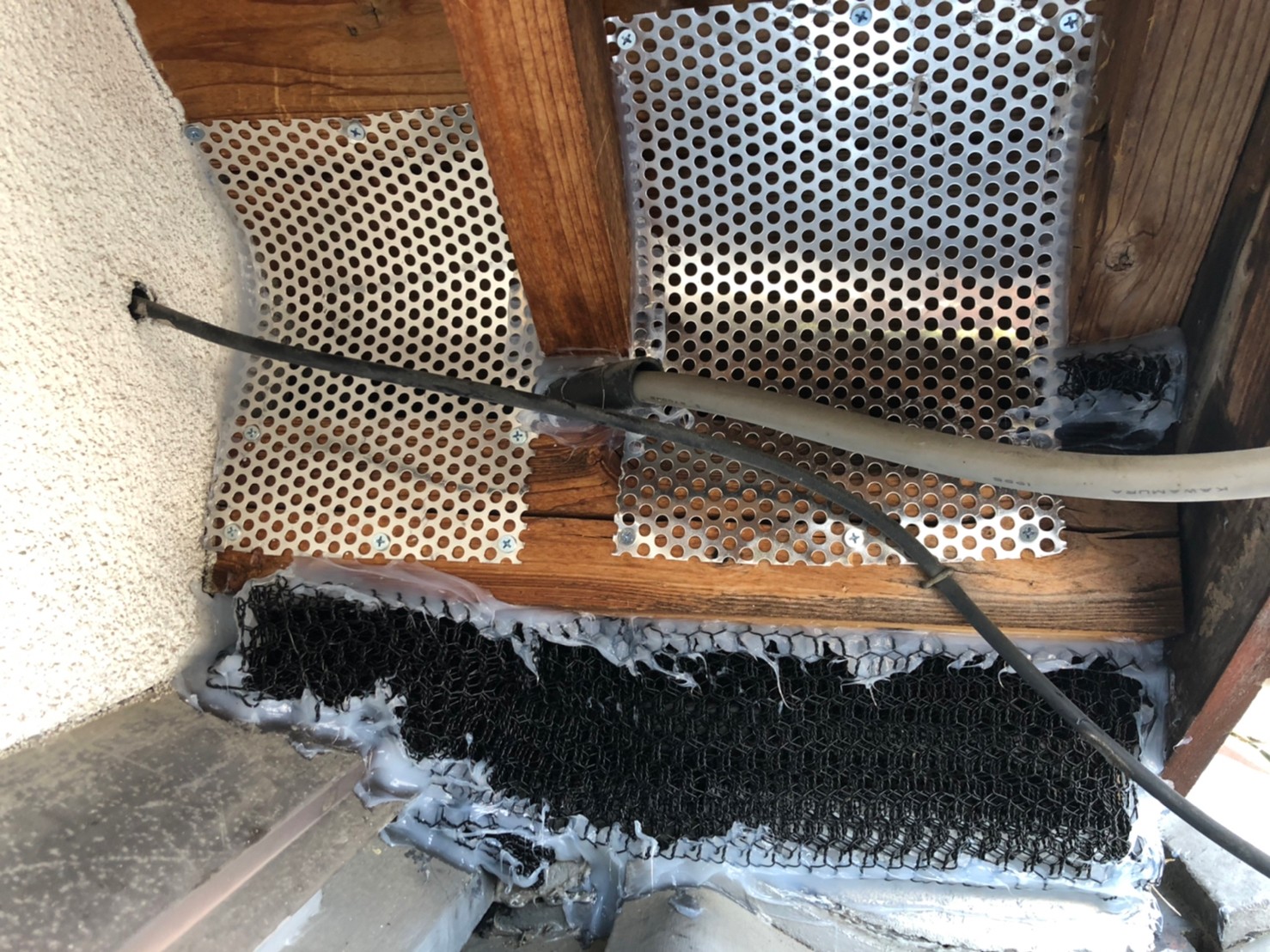 続いて、ネズミ、イタチの再侵入を防ぐために、パンチングメタルや金網、コーキング剤などを用いて侵入経路の封鎖を行います。