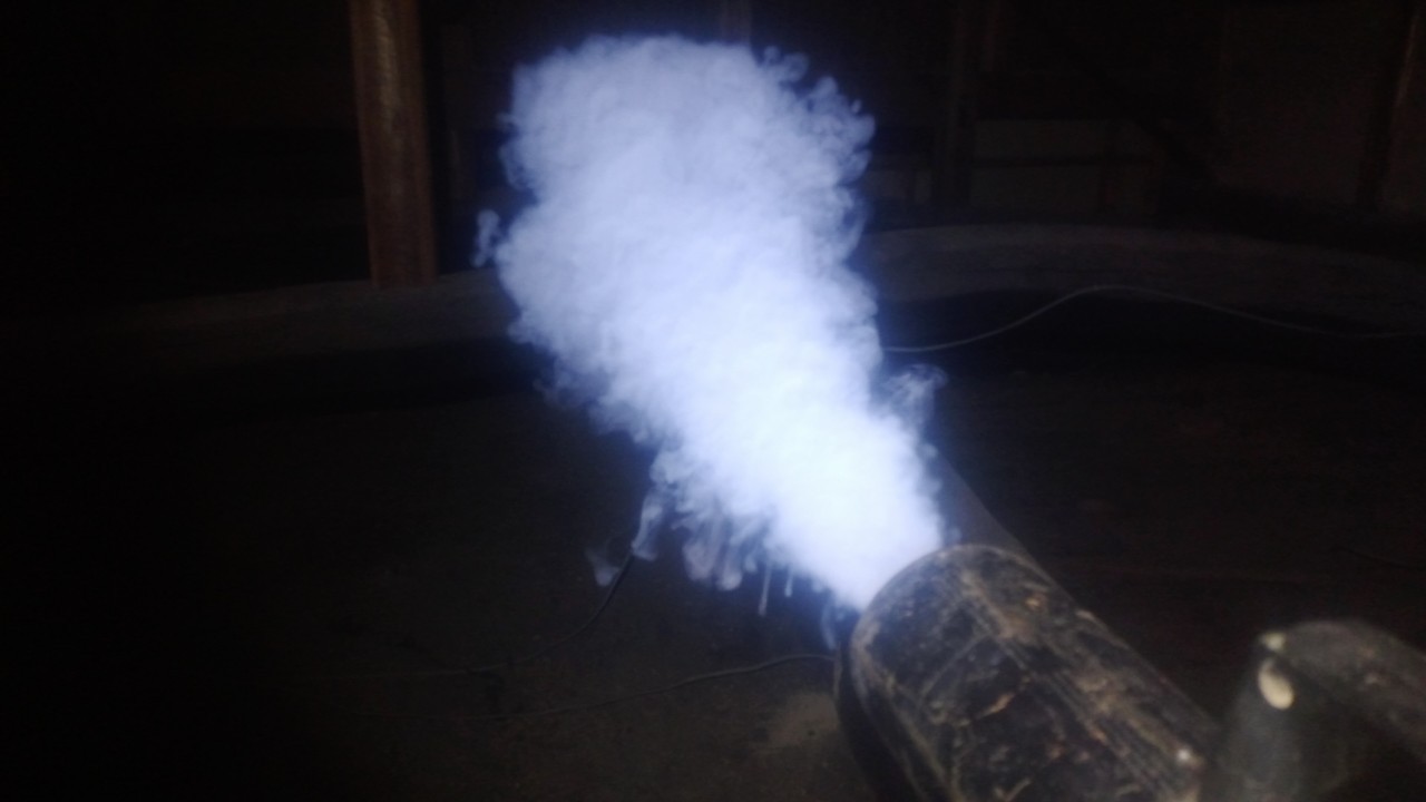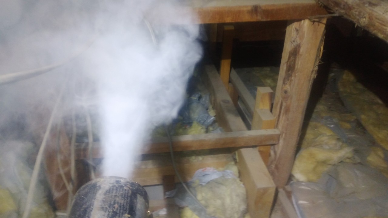 まずは、燻煙剤と呼ばれる薬剤を天井裏や床下に投入することで、イタチ、アライグマを追い出していきます。