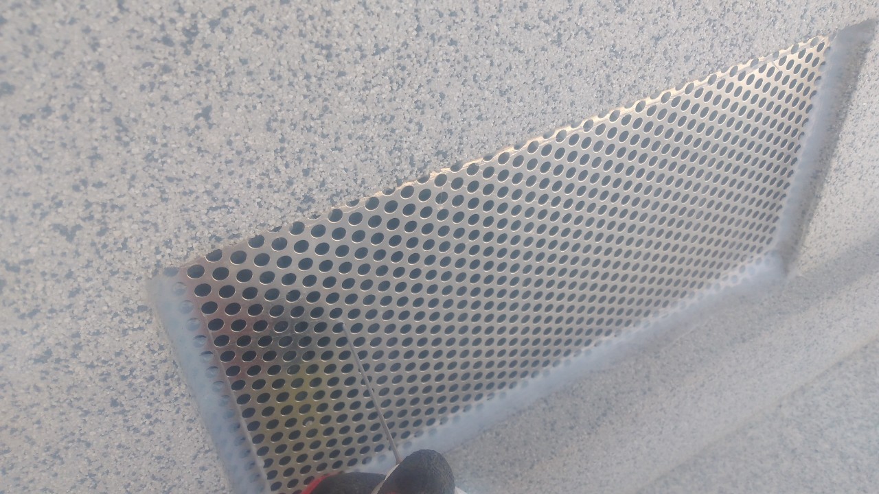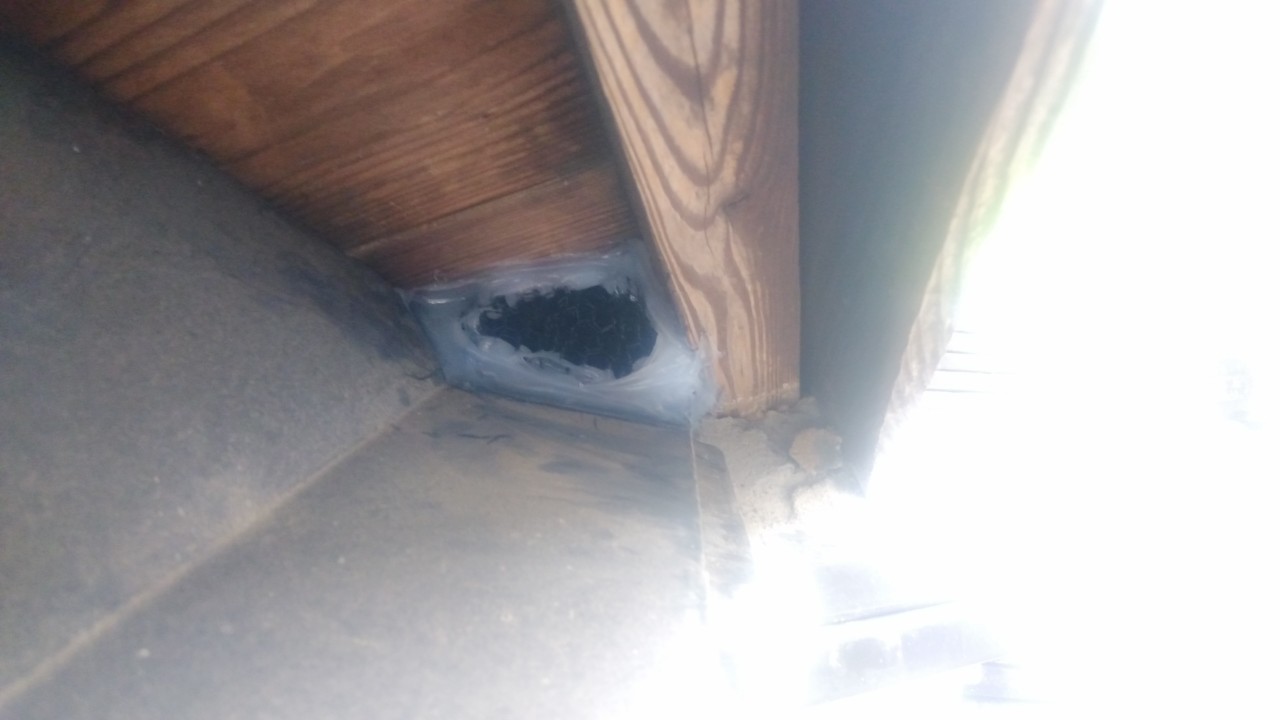続いて、イタチ、アライグマの再侵入を防ぐために、パンチングメタルや金網、コーキング剤などを用いて侵入経路の封鎖を行います。