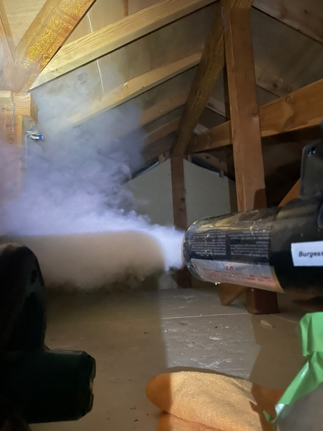 まずは、燻煙剤を使って屋内に潜んでいるコウモリを追い出します。