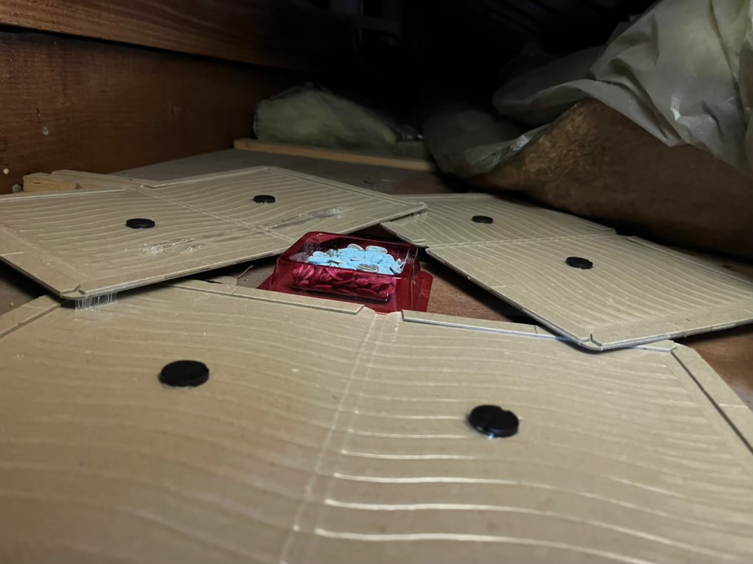 最後に、糞清掃や殺菌・消毒、マーキング消臭、ノミ・ダニ駆除、毒エサ・トラップ設置といった残りの作業を行い、駆除~再発防止までの工程が全て終了します。