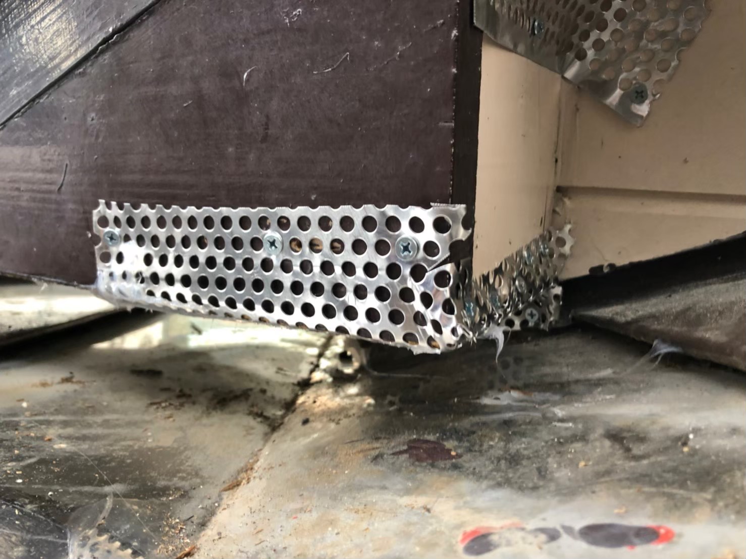 続いて、パンチングメタルや金網、コーキング剤などを用いて、あらゆる侵入経路を封鎖していきます。これによりネズミ、イタチに限らず、他の害獣の再侵入も防ぐことができます。