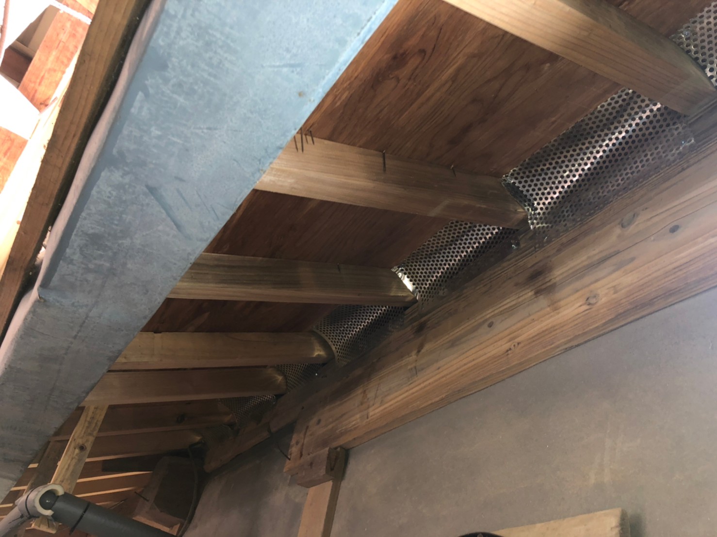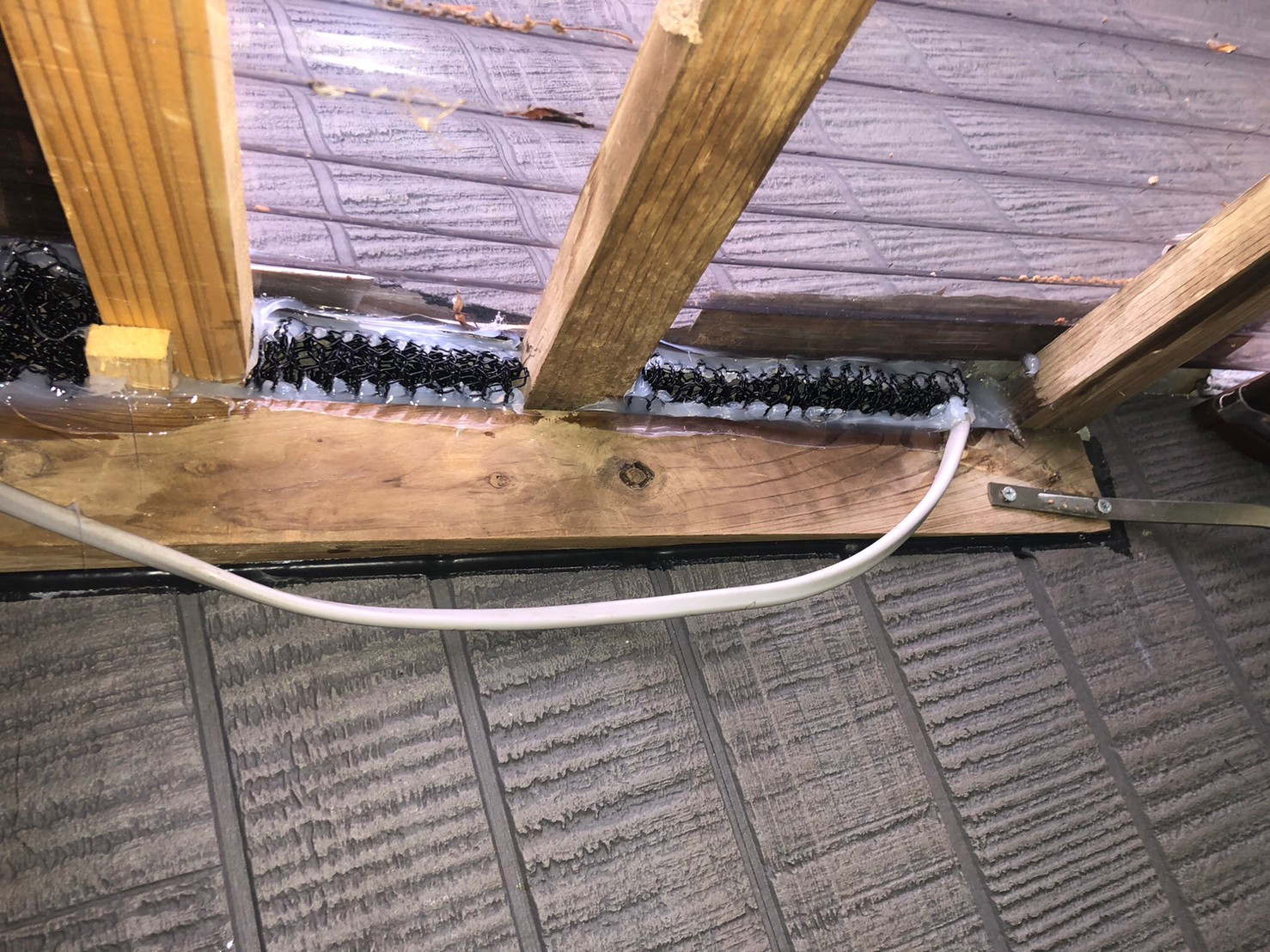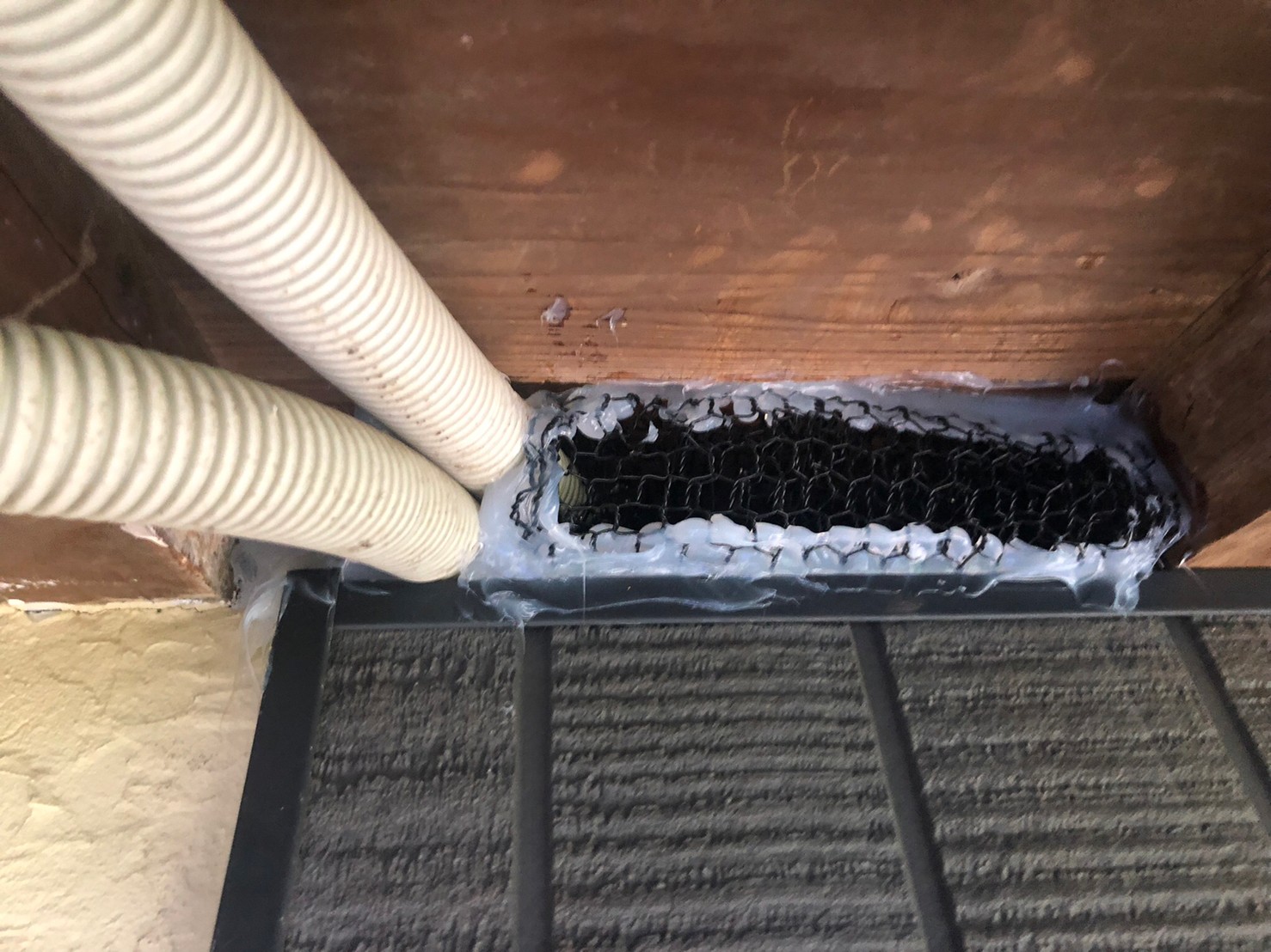床下通風口や屋根の隙間、外壁の隙間、エアコン配管の隙間等がイタチ、アライグマの侵入経路と疑われました。