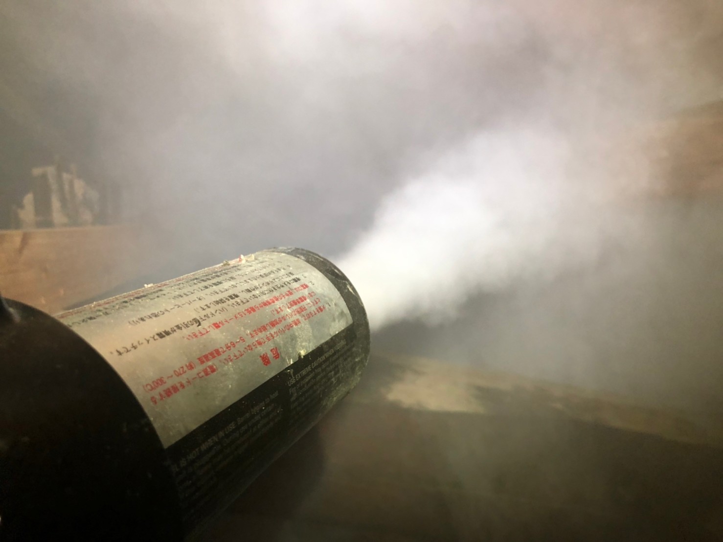 まずは、燻煙剤を使って屋内に潜んでいるイタチ、アライグマを追い出します。