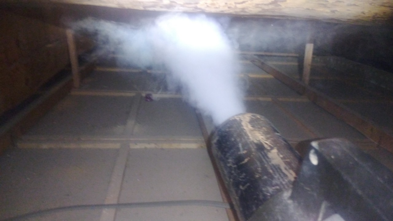 まずは、燻煙剤を使って屋内に潜んでいるネズミ、イタチを追い出します。